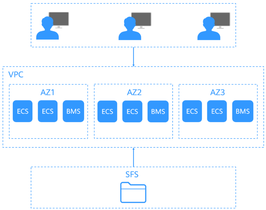 SFS:弹性文件服务(Scalable File Service),能够按照用户的需要,提供弹性扩展的文件存储,它可以同时为多个ECS(弹性云服务器)、CCE提供共享文件服务。SFS访问方式如下:
