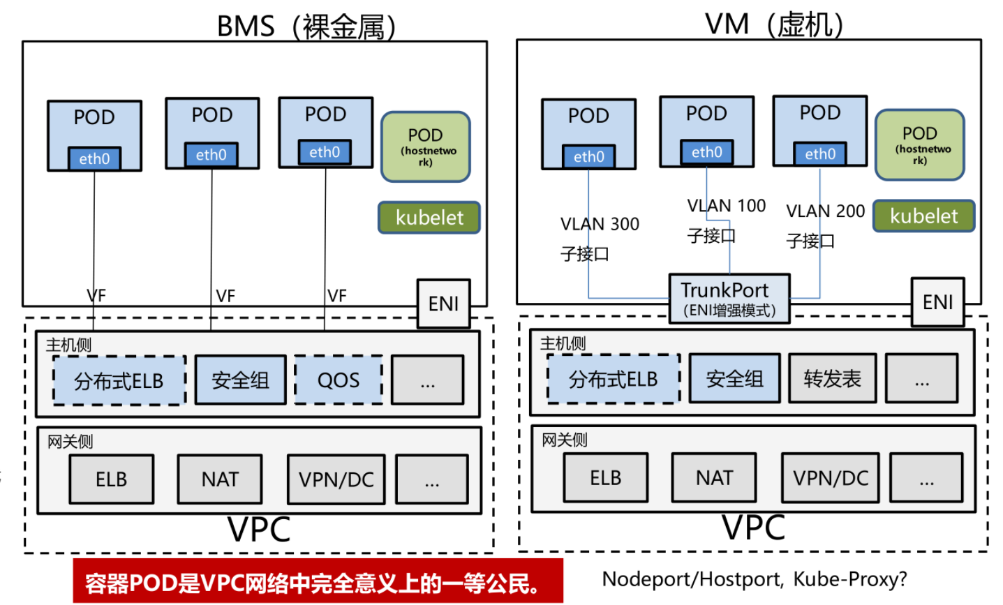 lPVS/IPTables实现Service负载均衡,不再需要kube-proxy组件,service负载均衡卸载到VPC分布式ELB