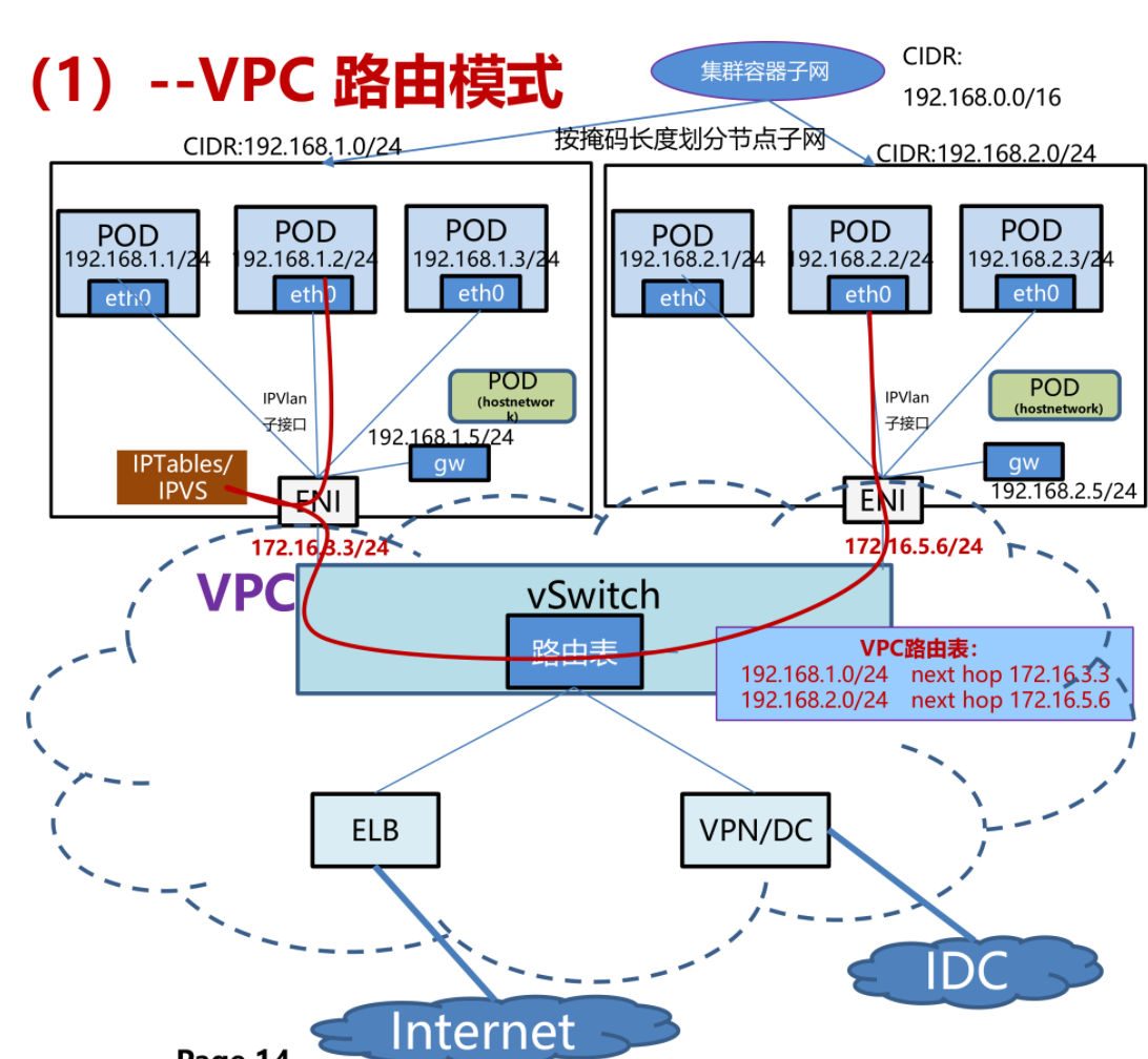 每个容器POD具有独立的VPC子网地址,统─IPAM(节点、容器、服务子网统一管理)