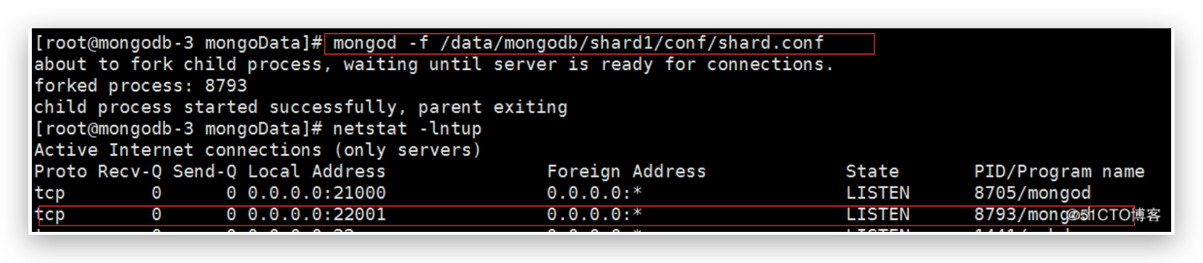 mongod -f /data/mongodb/mongoconf/conf/mongoconf.conf #三台服务器均启动config server