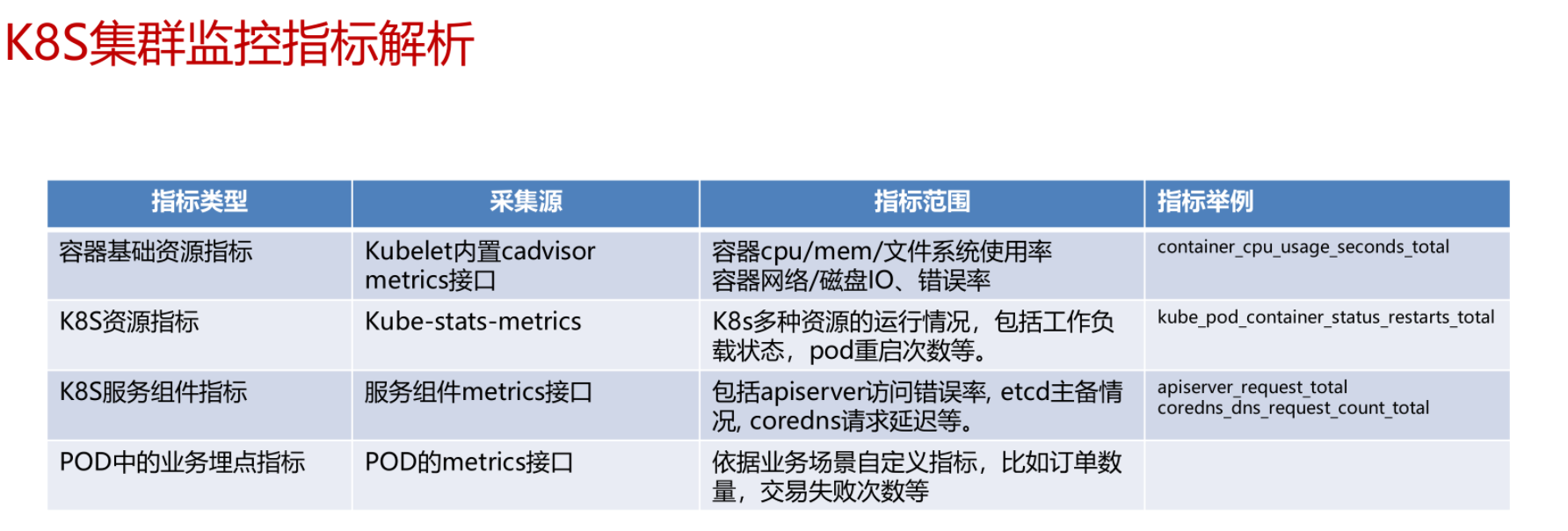 系统指标:集群CPU使用率、磁盘使用率以及网络宽带情况等等。