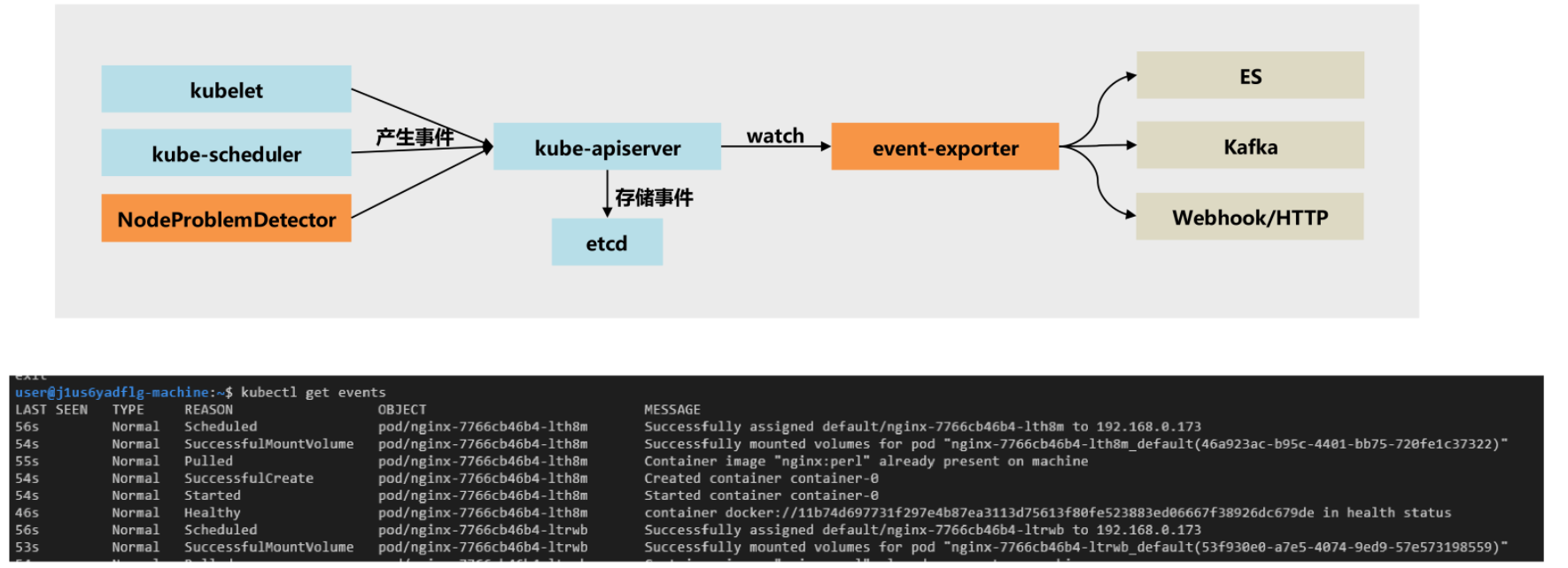 K8s Event:K8s Event是一种资源对象,用于展示集群内发生的情况,k8s系统中的各个组件会将运行时发生的各种事件上报给apiserver.
