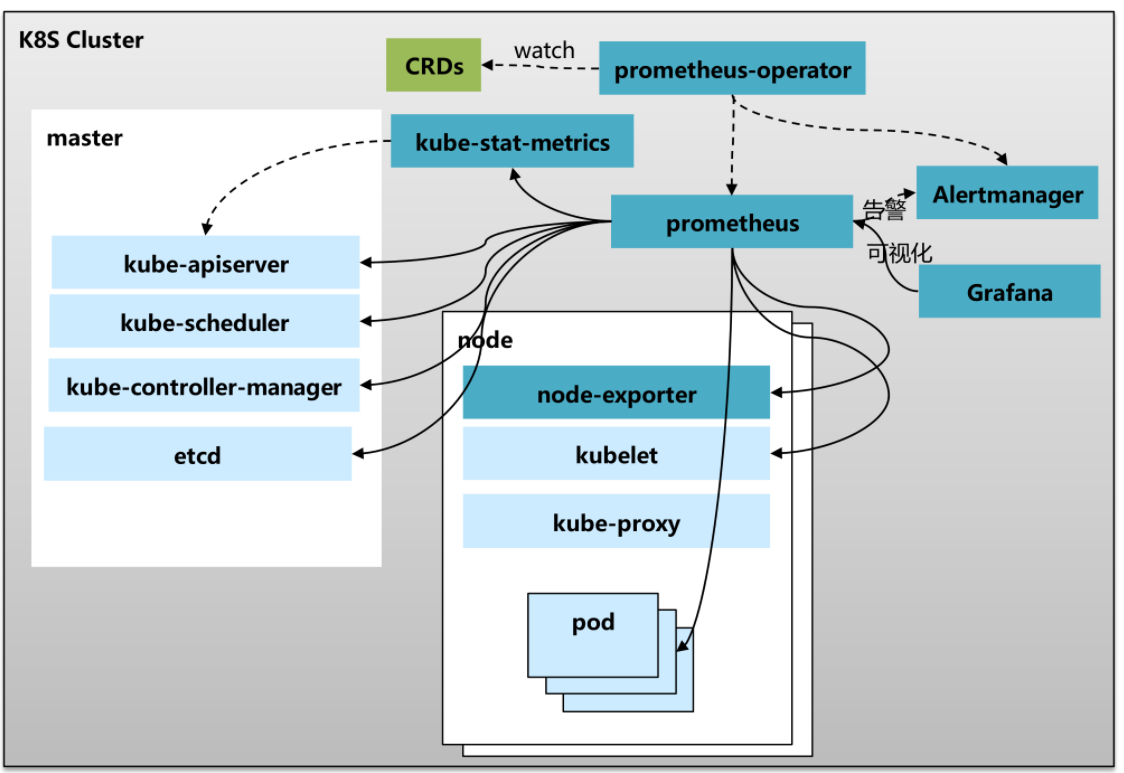 动态性:应用的迭代更新更加便捷迅速,POD、Service等资源随时可能会销毁或重建,需要监控系统具备动态发现k8s资源的能力。