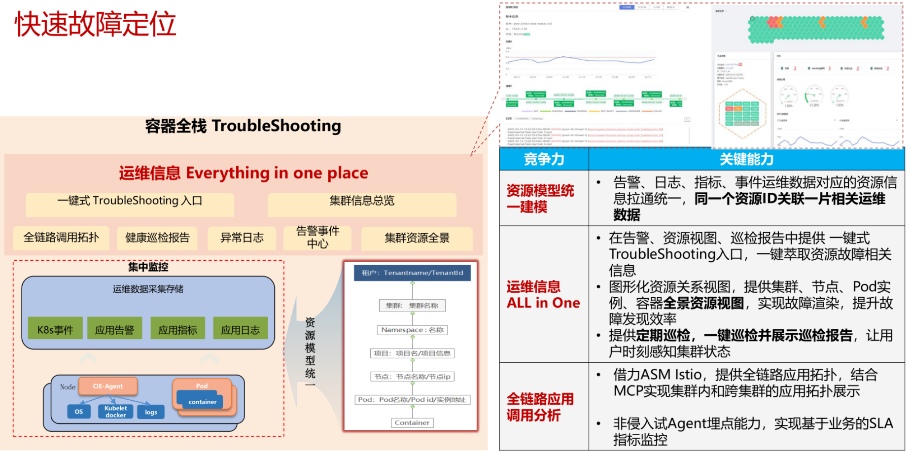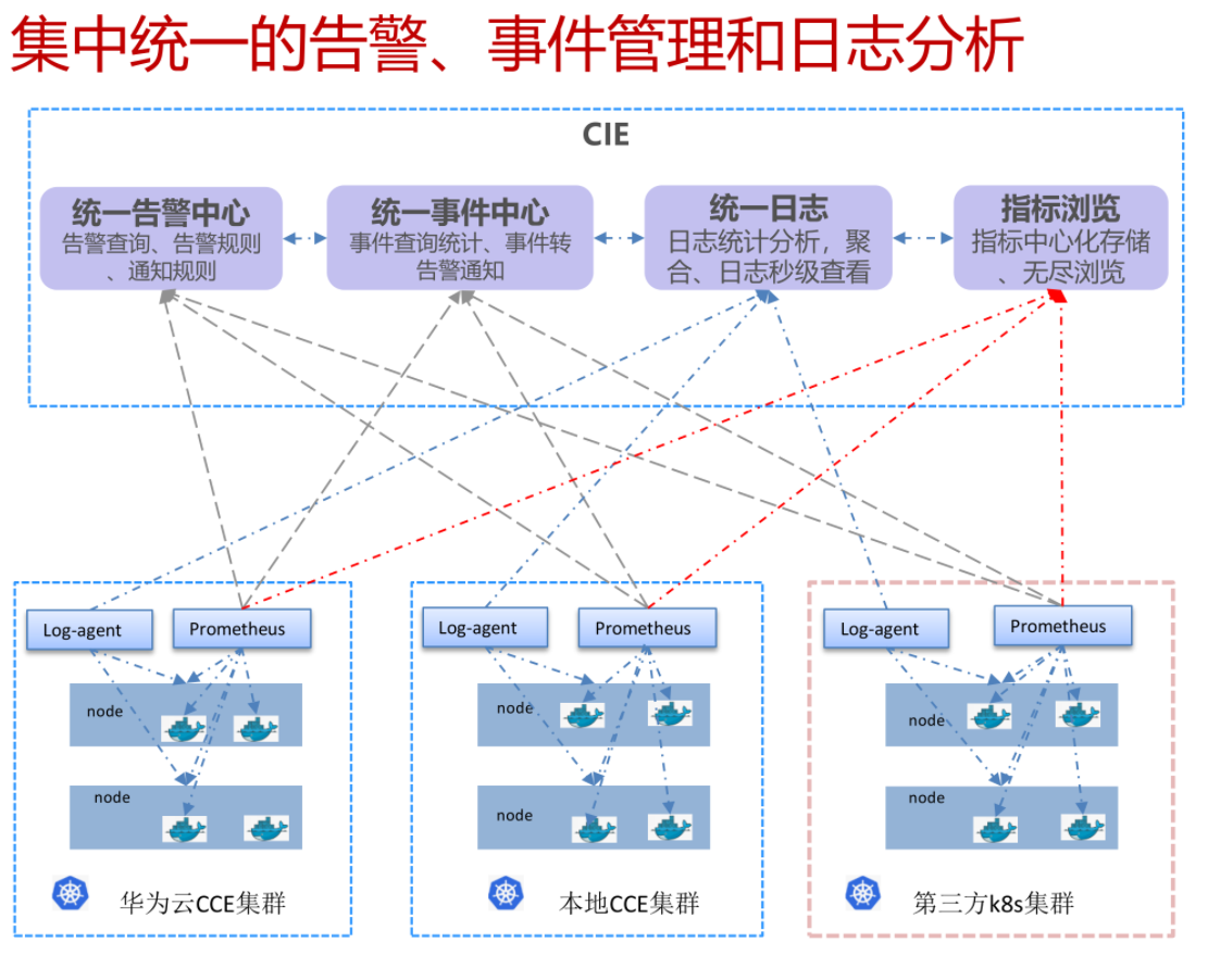 集中告警/事件/日志:具备多集群告警、事件、日志统一管理能力;