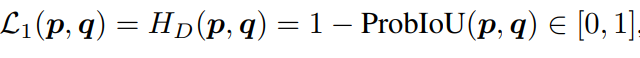 基于上述 Hellinger Distance , 本文提出高斯分布相似性计算方法 ProbIoU ,其具体计算公式如下:
