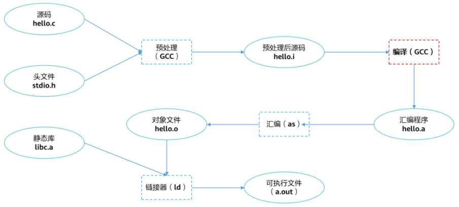 【摘要】 编译型语言应用执行过程大部分应用可以通过重新编译即可移植到鲲鹏平台预处理命令: gcc -E hello.c -o hello.i,预处理完成后使用命令: cat hello.i可以看到预处理后的代码编译命令: gcc -s hello.i -o hello.s汇编命令: gcc -c hello.c -o hello.o链接处理可分为:静态链接:函数的代码将从其所在地静态链接库中被拷贝到最...