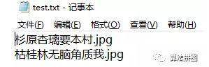 2.2.3. 在dataset2_002文件夹下新建test.txt文件,将我们刚刚打的那行字分成两行,加上.jpg(如下图)。