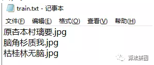 2.2.4. 在dataset_002文件夹下新建train.txt文件,将我们刚刚那行字打乱后加上.jpg,写成三行(如下图)。