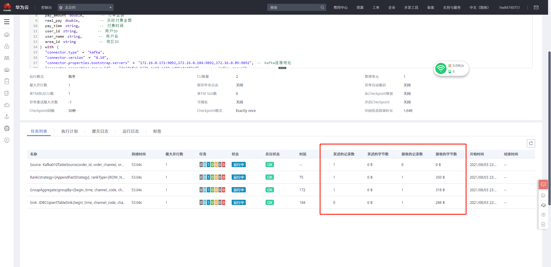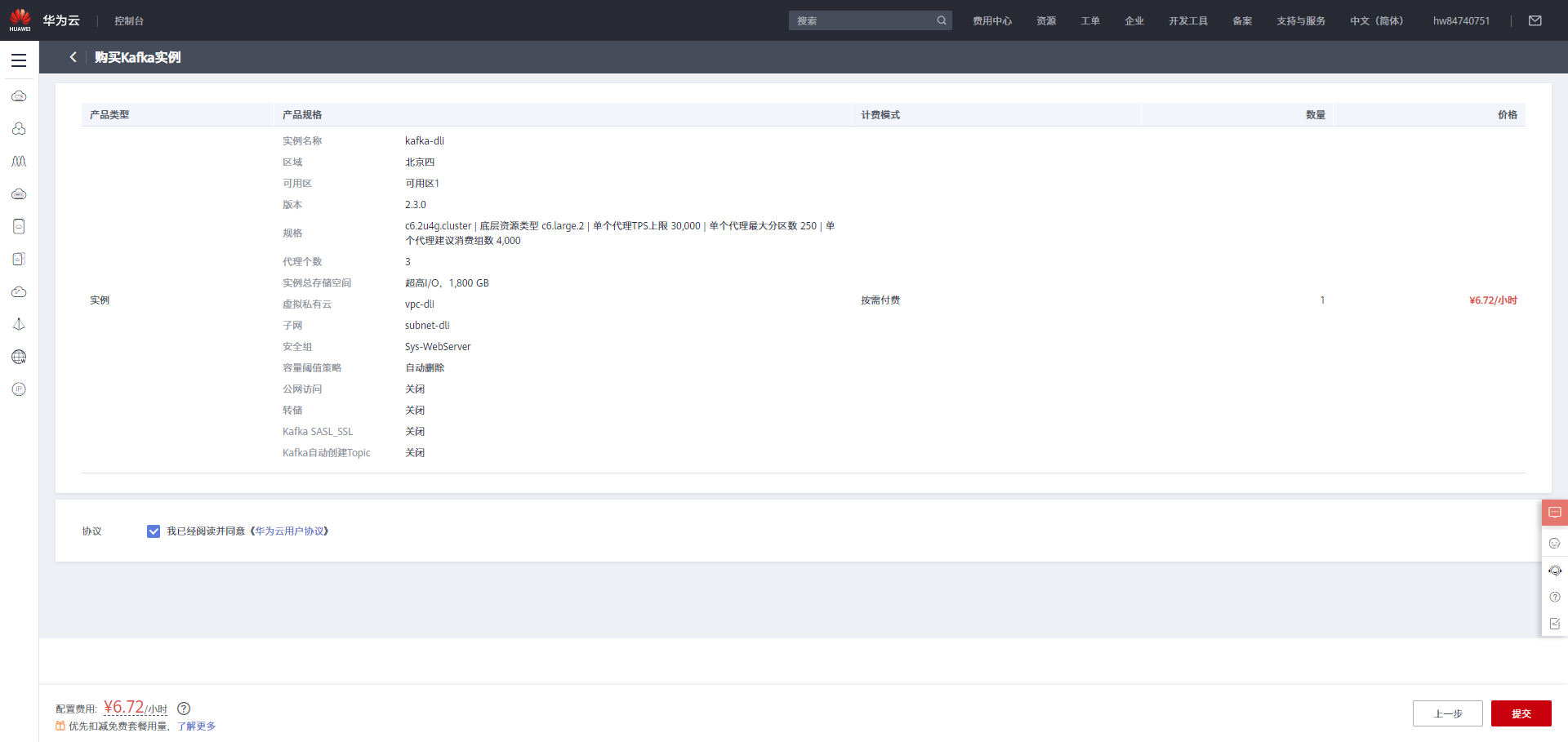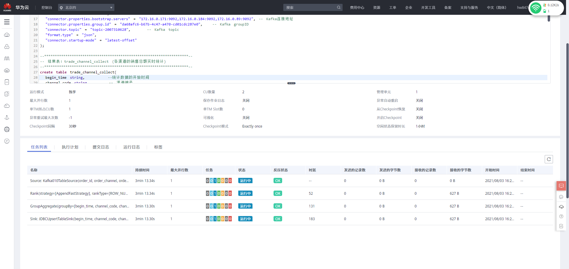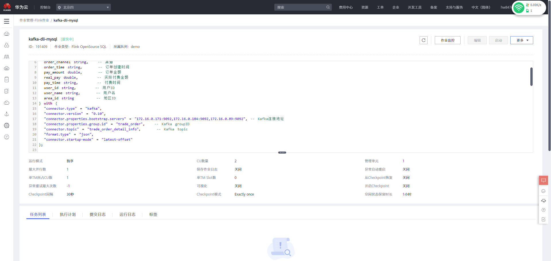 3)本实验前需使用Kafka客户端写入数据,参考https://support.huaweicloud.cn/qs-kafka/kafka-qs-0409006.html