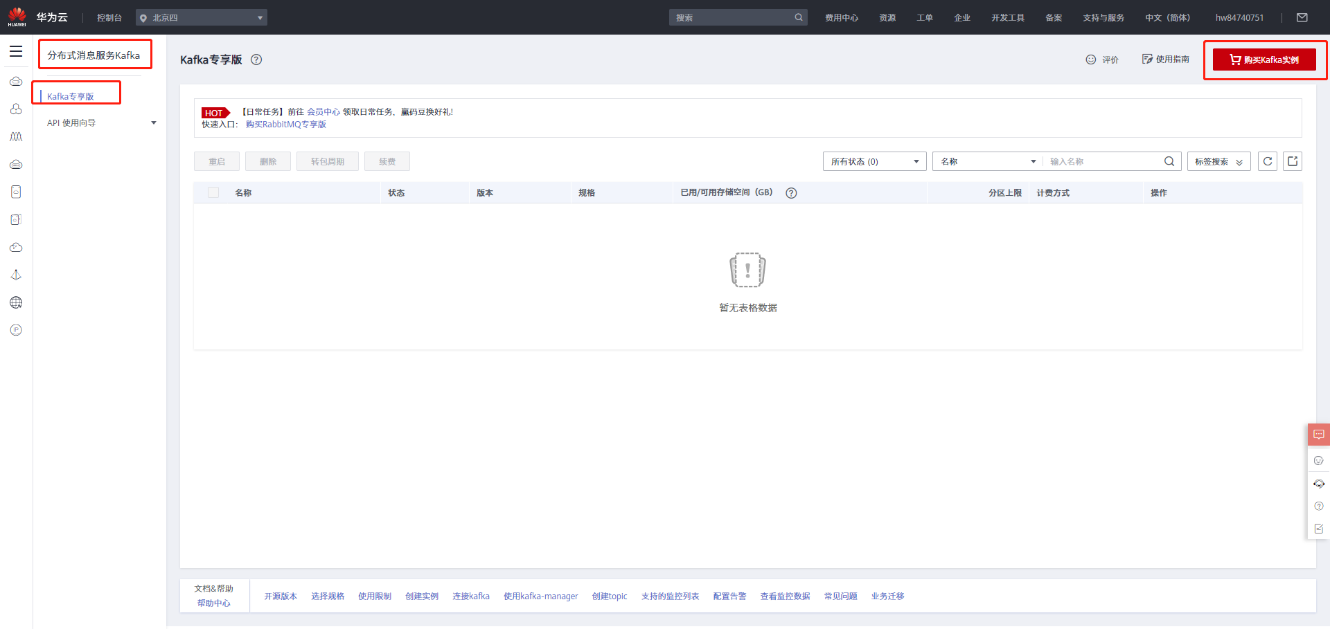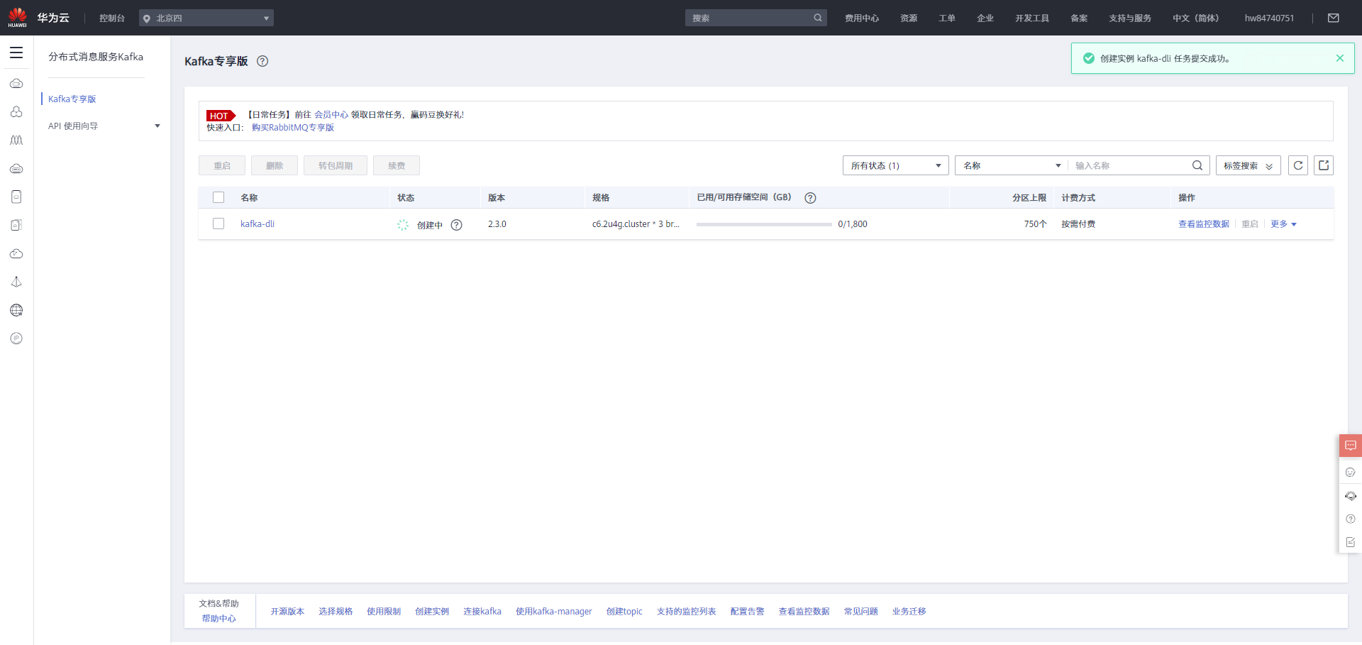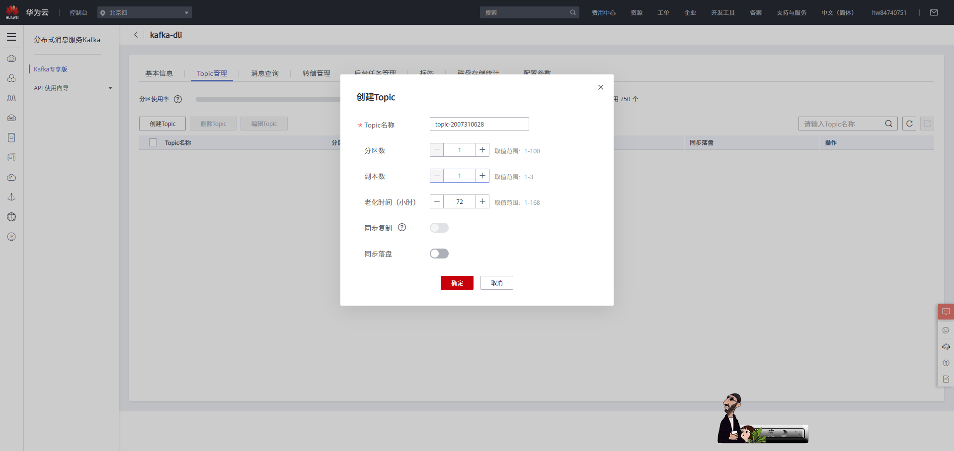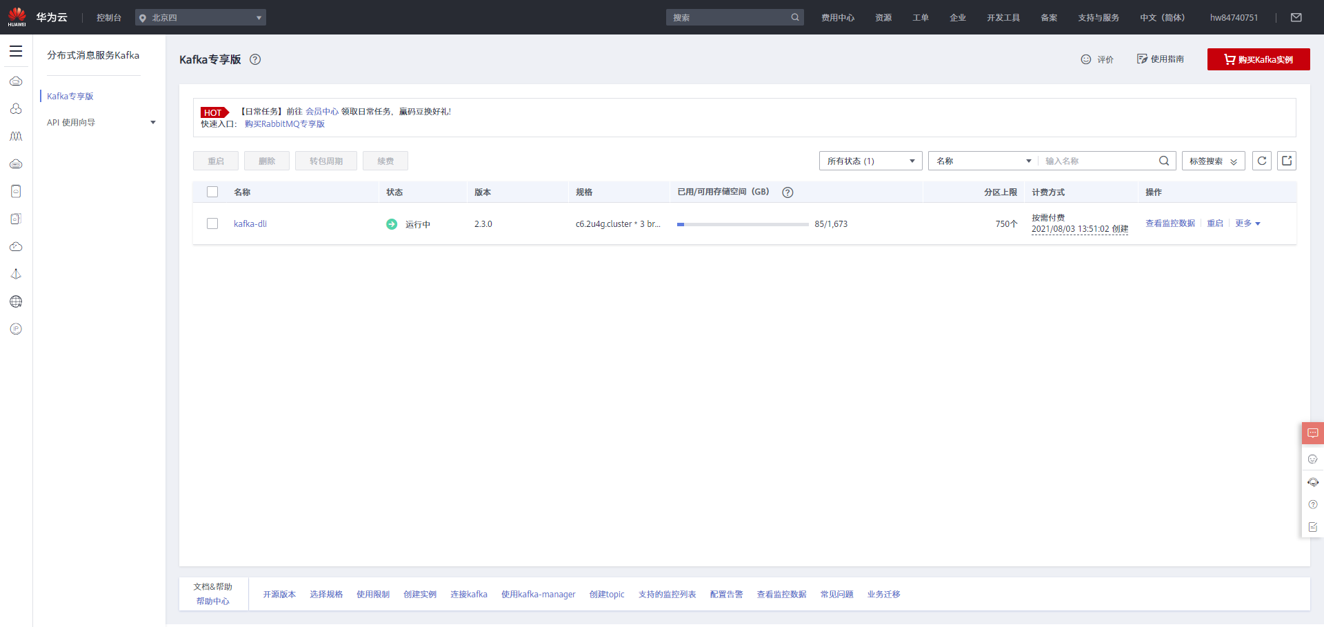 3)本实验前需使用Kafka客户端写入数据,参考https://support.huaweicloud.cn/qs-kafka/kafka-qs-0409006.html