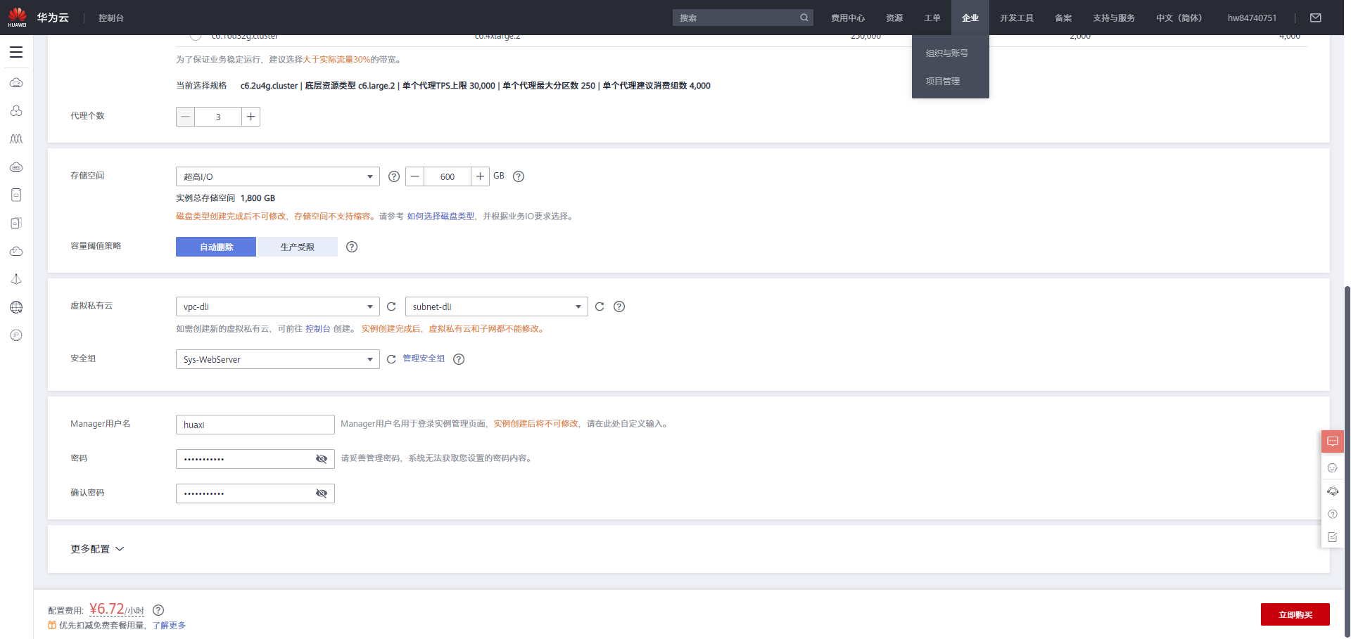 步骤2:创建资源。在您的账户下创建作业需要的相关资源,涉及VPC、DMS、DLI、RDS。