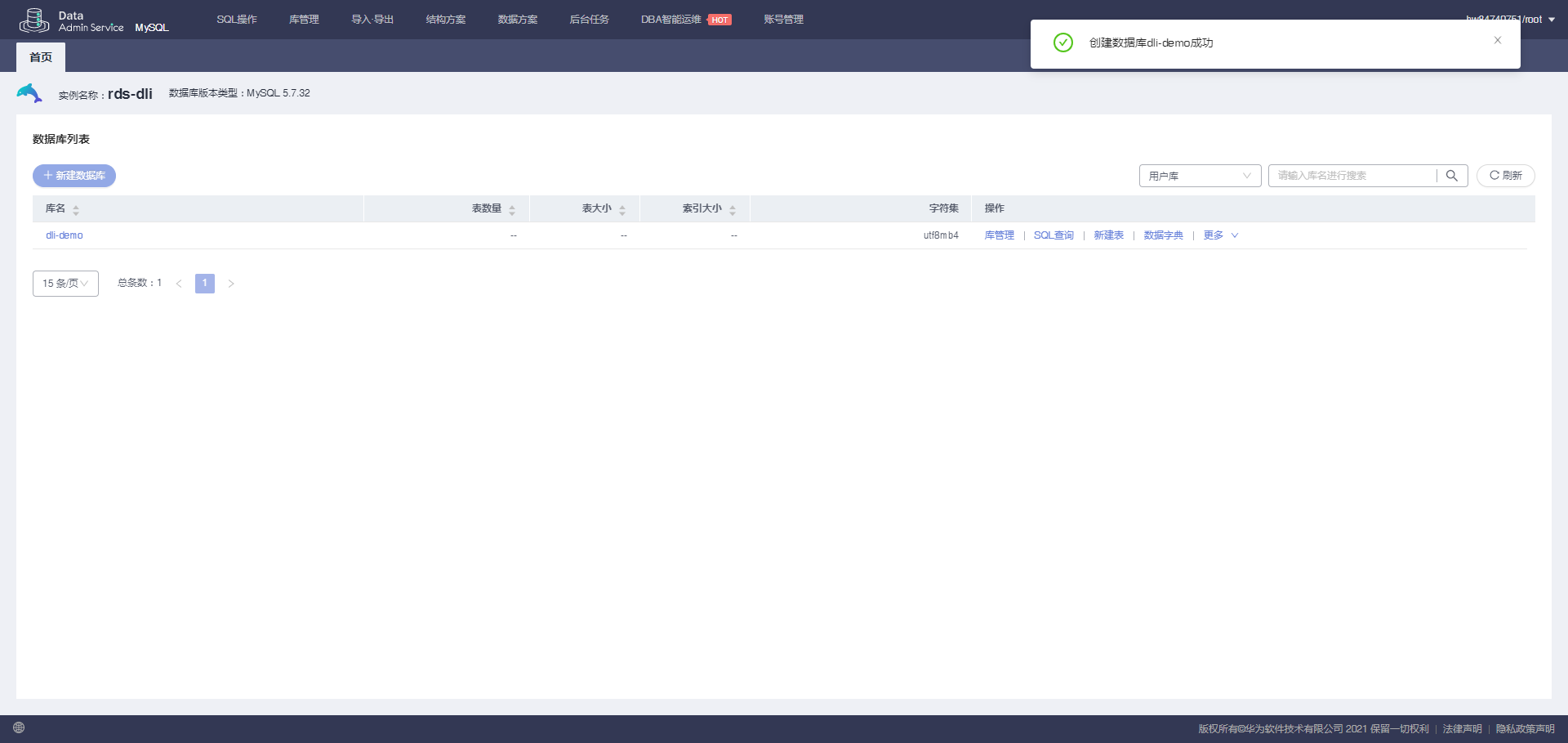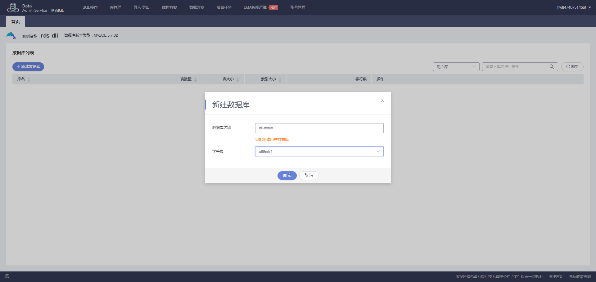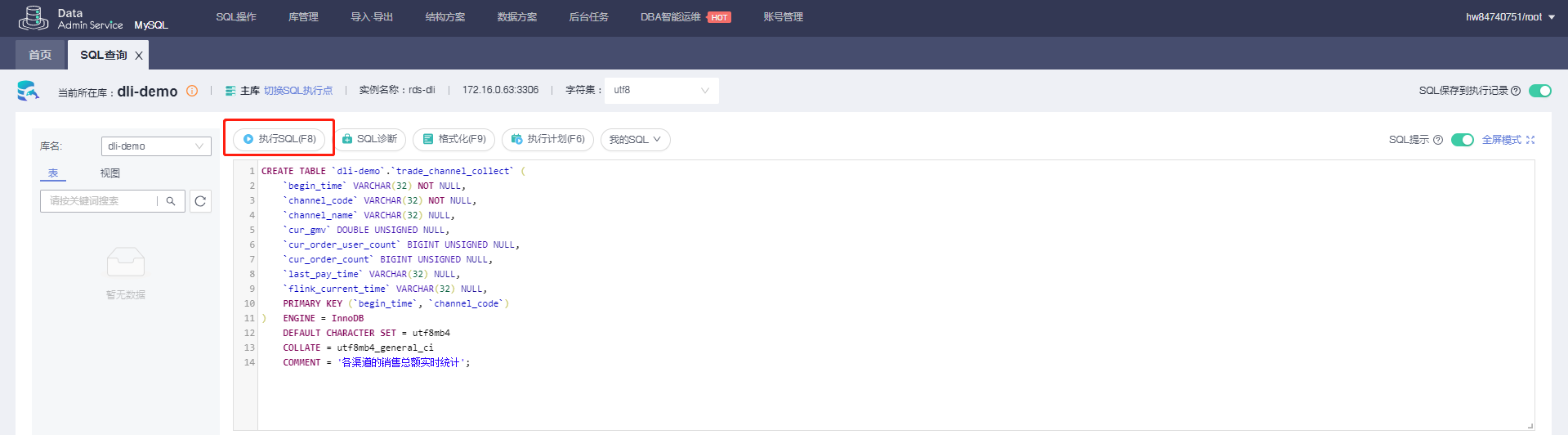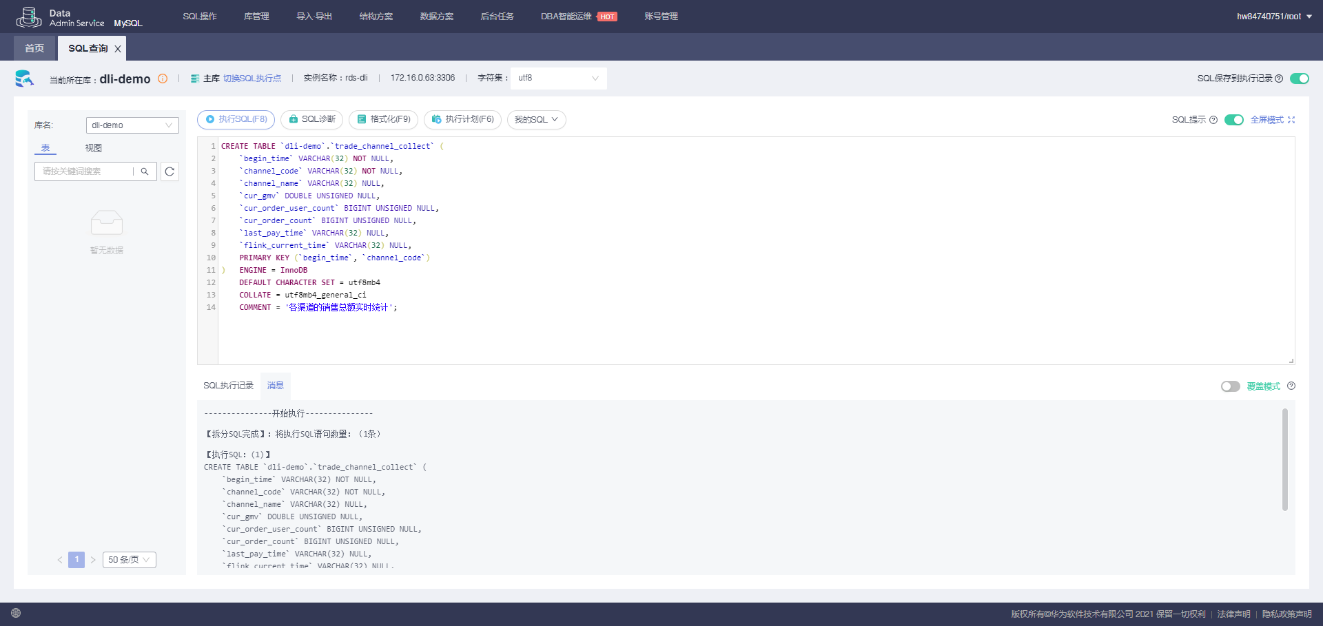 步骤4:创建RDS数据库表。获取RDS实例内网地址,登录RDS实例创建RDS数据库及MySQL表。