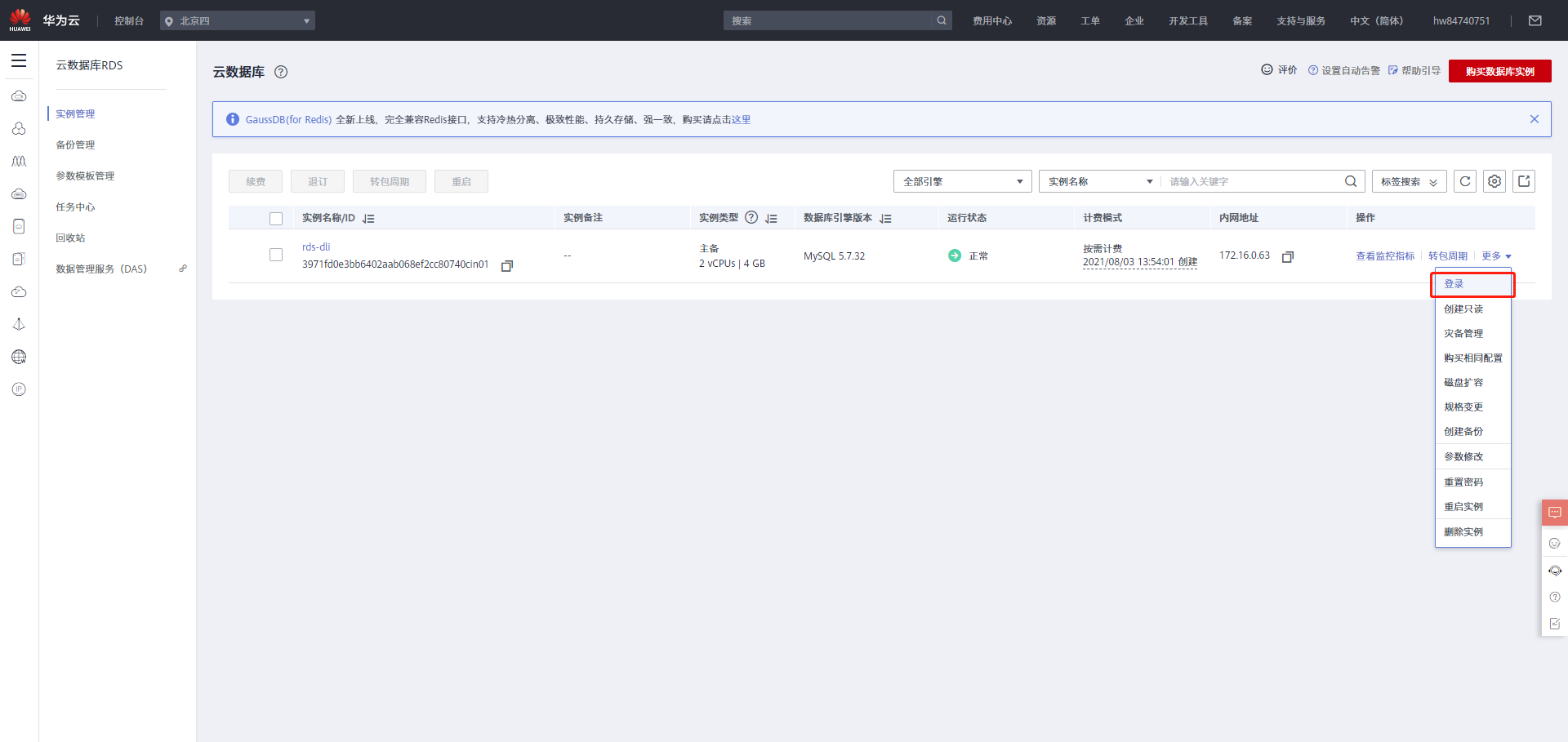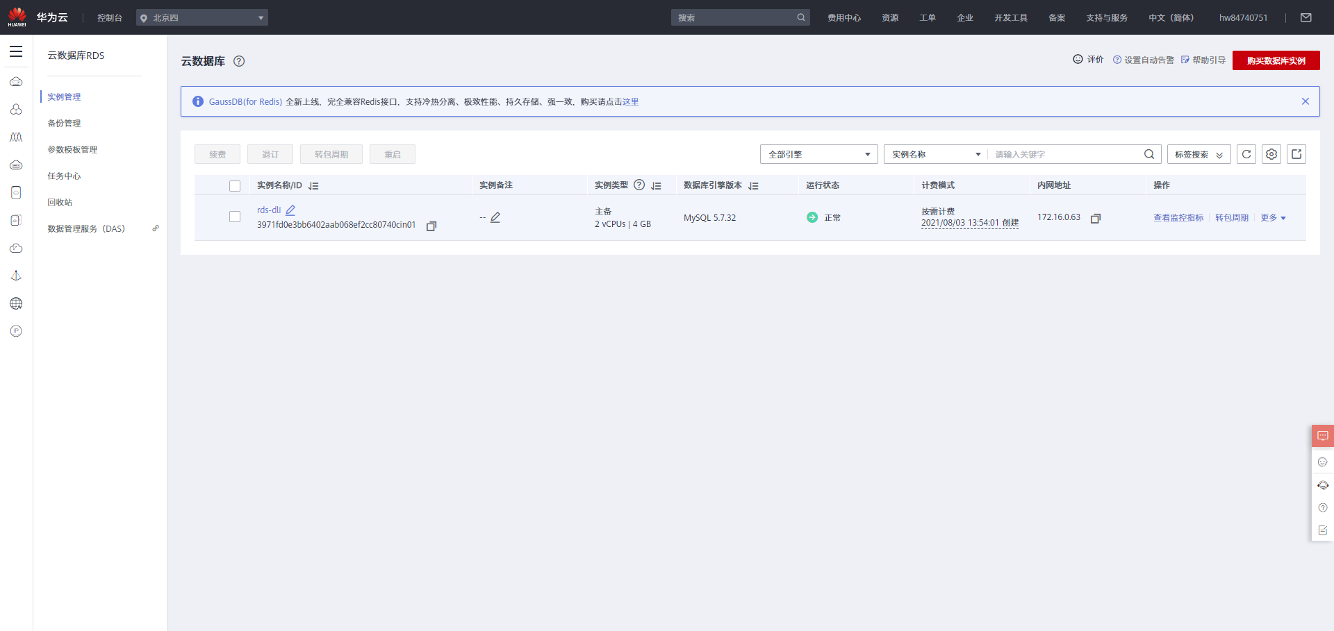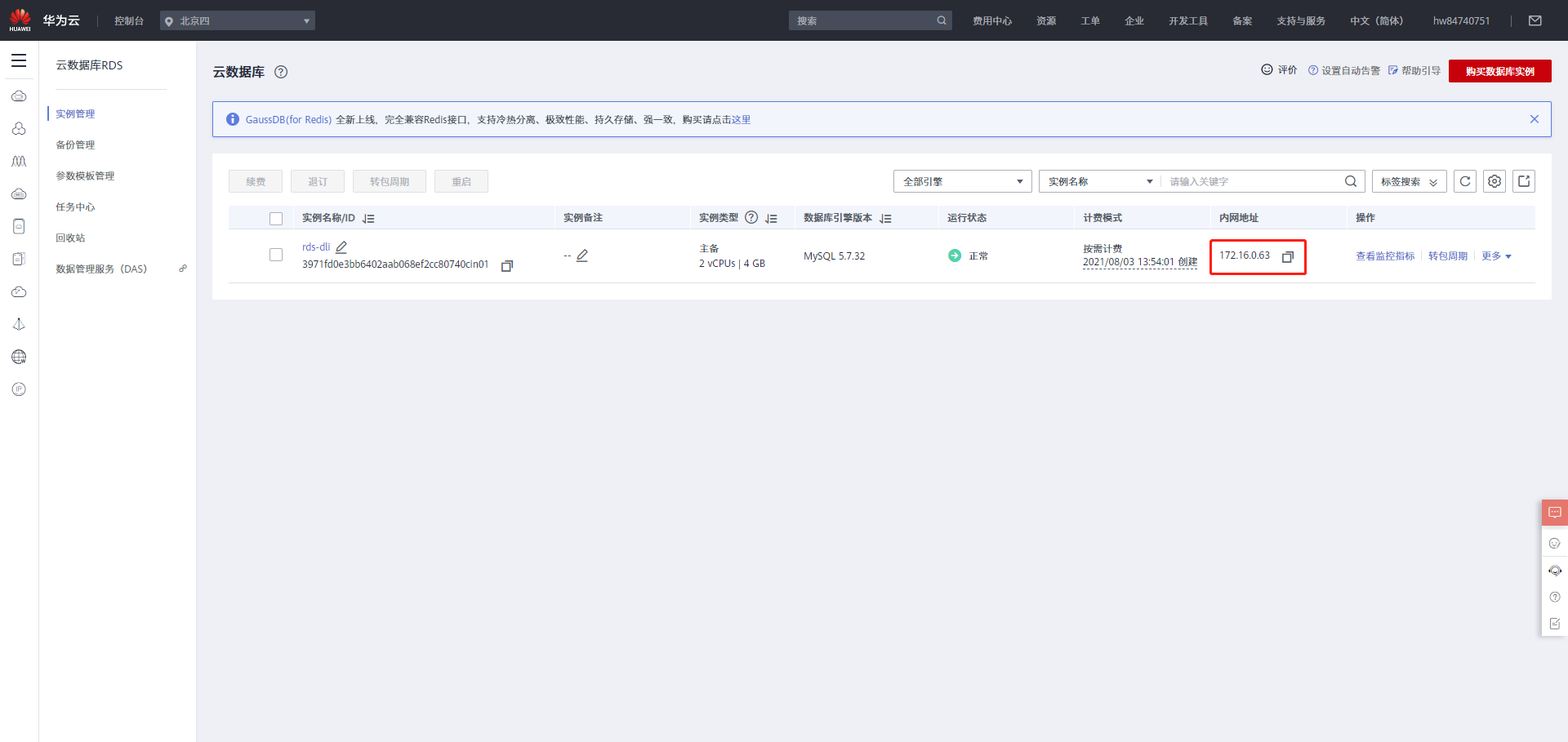 步骤4:创建RDS数据库表。获取RDS实例内网地址,登录RDS实例创建RDS数据库及MySQL表。