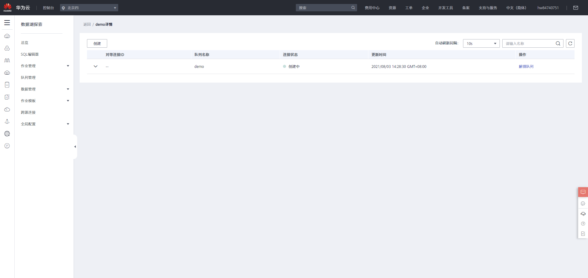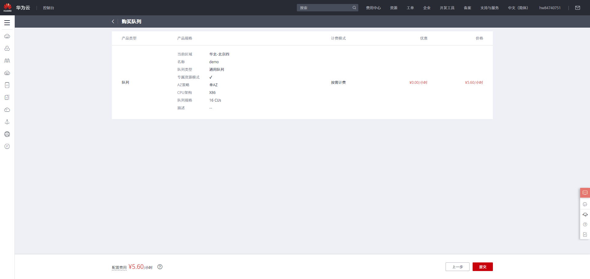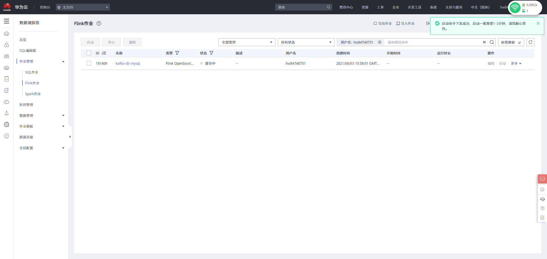 4)建议操作时间1-2小时,结束后立即删除有关服务实例、作业、资源,避免扣费!!!