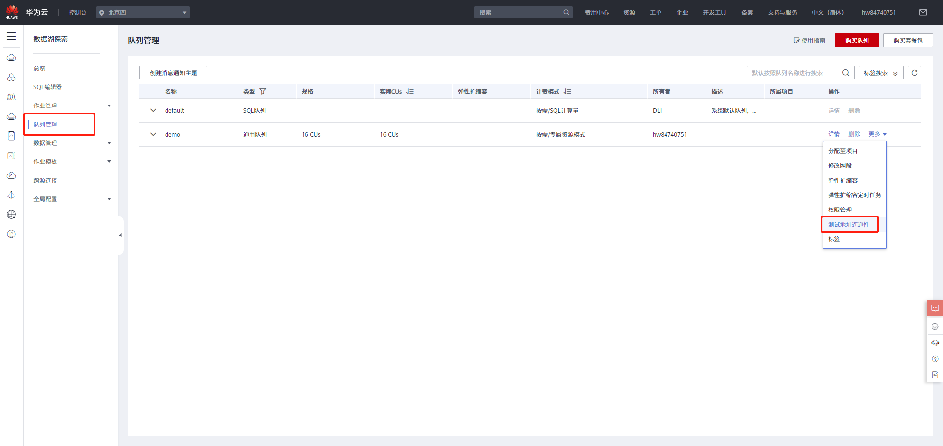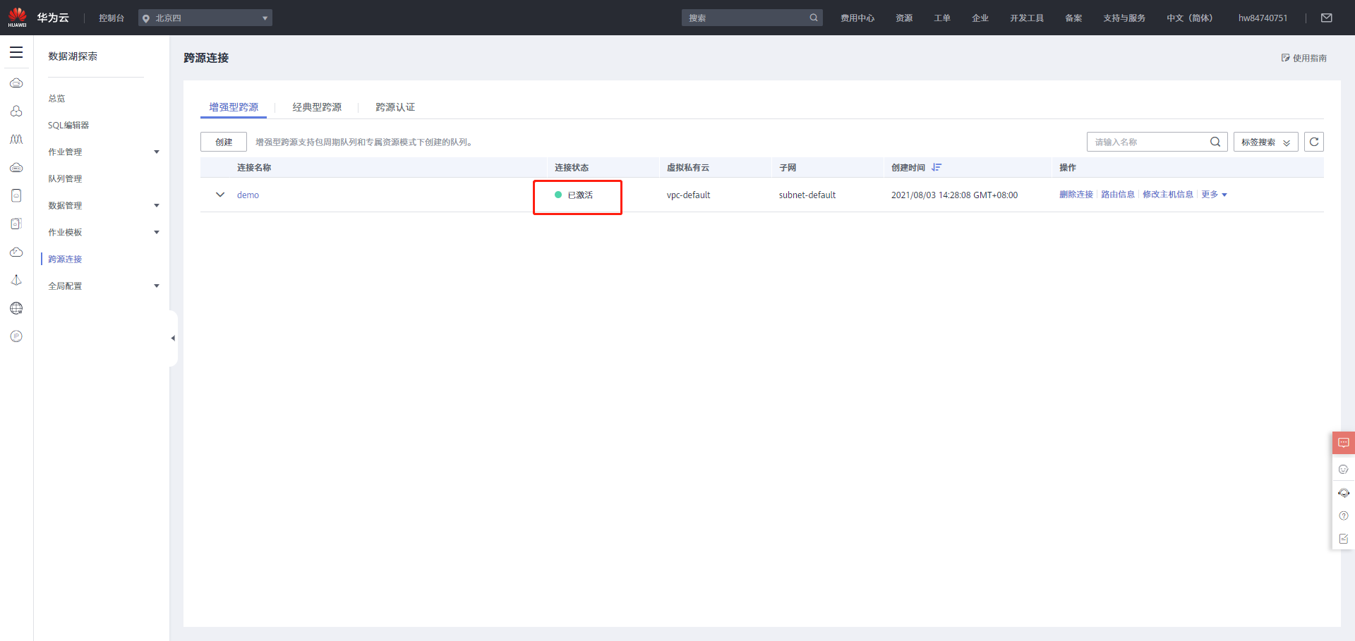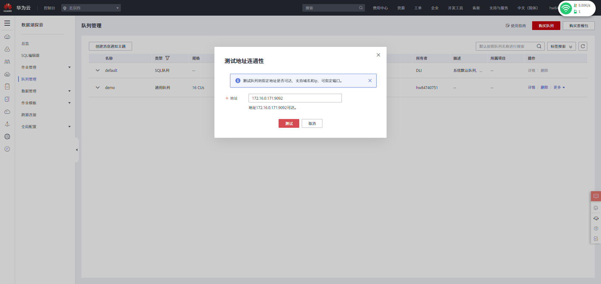步骤5:创建DLI增强型跨源。创建DLI增强型跨源,并测试队列与RDS、DMS实例连通性。