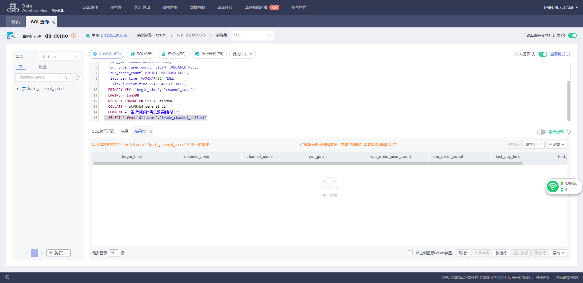 步骤7:查询结果。查询Flink作业结果,使用DLV进行大屏展示。