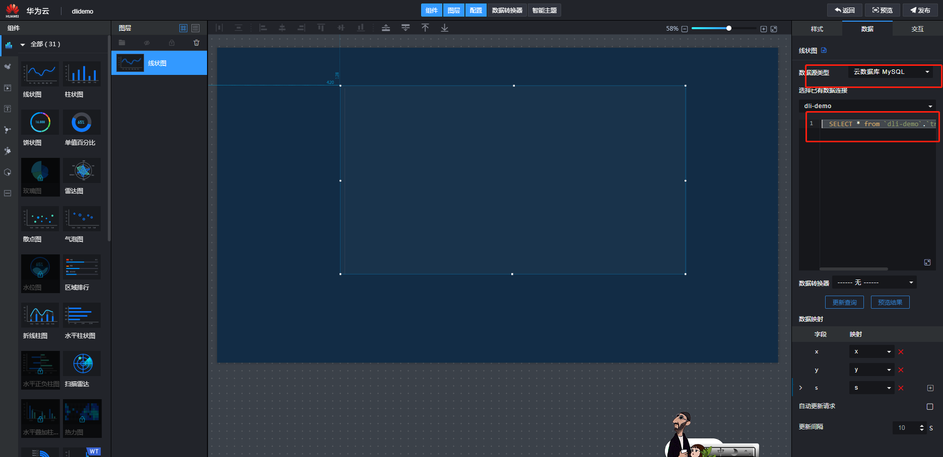 配置DLV大屏,执行SQL查询RDS MySQL,即可以实现大屏实时展示。具体配置方法可参考:DLV开发大屏。