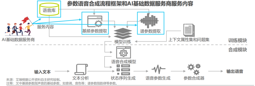 语音合成技术已经广泛应用于人们的日常生活中,如手机助手、智能客服、智能音箱、语音导航都是其应用场景。目前语音合成的主流方式可以分为波形拼接合成和参数合成两种,其中参数合成是利用文本参数和声学参数间形成映射模型,从而完成文本内容向语音转化的过程,所以在有限样本数据的情况下,参数合成语音成为了众多智能语音算法团队的首选,随着深度学习在语音领域的突破,利用神经网络取代传统映射建模的参数合成方式,在合成效果上更进一步,逐渐减少了合成语音的机械感。在语音合成中AI公司着重于映射模型算法的创建和训练,而语音片段数据和相应的声学参数标注则交由数据服务商提供,其间数据服务商需要对录制的发音人语音片段进行音素、韵律、音节边界、音素边界、词性、重音、声调等内容进行标注,然后切分、截取音素边界;并且在项目初期需要向客户展现合成demo,在项目交付时需校验合成效果,这就要求数据服务商不仅要掌握专业的声学知识、数据标注经验,还要拥有语音合成的算法能力,目前该领域主要由海天瑞声和标贝科技两家数据公司提供服务,未来随着物联网的普及,将会有更多交互设备出现,语音合成需求将会持续增长,在此趋势下,拥有语音合成数据处理能力,将成为具有排他性的竞争壁垒。