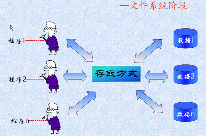 因此这阶段依然存在数据和程序缺乏独立性 、增删数据困难的缺点。