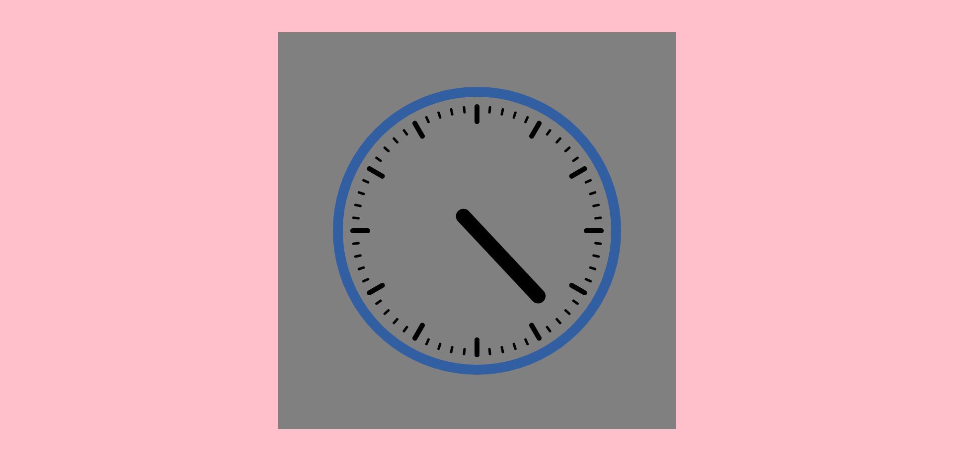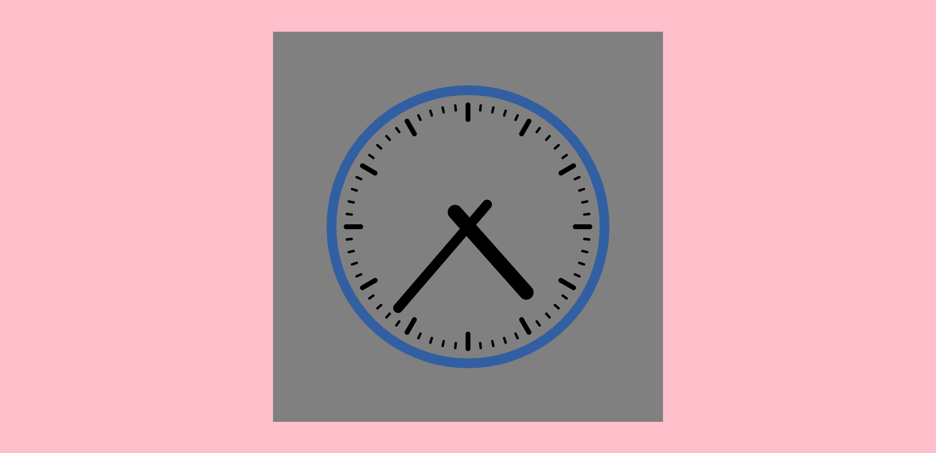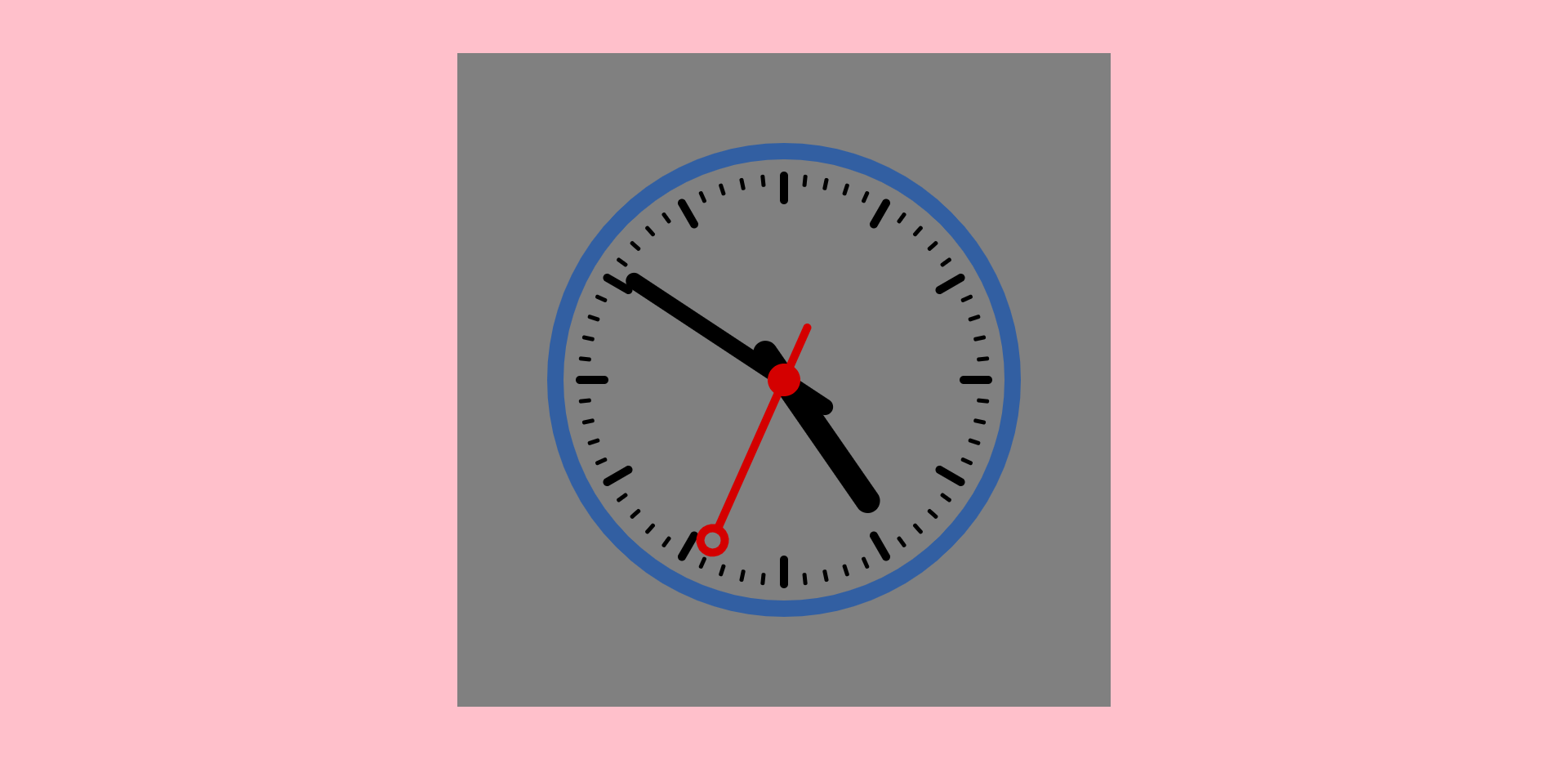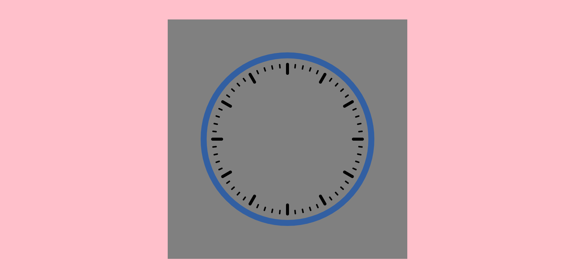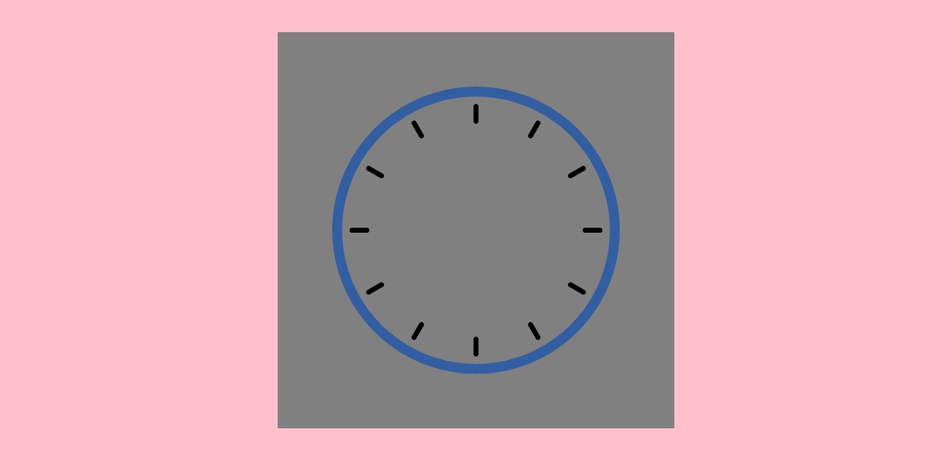 定义body背景色为粉色,在body中定义一个800*800的灰色画布,clock.css文件内容如下。