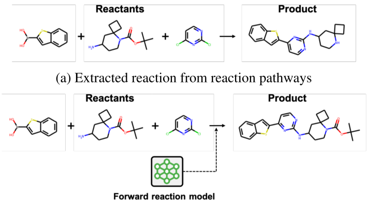 Step C.增强反应集。基于正向反应模型替换真实反应集中反应的产物以获得增强的反应集。
