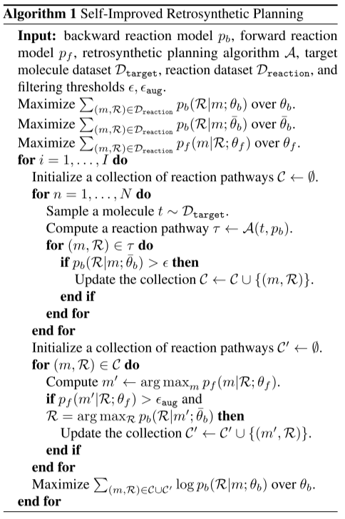 在这项工作中,作者提出了一个基于自提升模型适应的逆合成规划框架。该框架训练一个逆反应模型用以发现成功的合成路线,另外通过正向反应模型产生新的反应使训练多样化。实验表明,该框架可从构件分子中生成真实且可执行的反应。该工作缩小了有监督的单步逆合成模型与逆向合成规划目标之间的差距。最后,作者表明利用不真实的反应样本改进过滤模块以及开发更好的增强策略将是未来可以关注的研究方向。