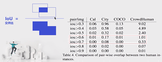 从下图中可以直观感受到它的数据集,这里也提到一个IoU交并比,指的是两个框的相对的重叠度。