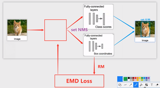 基于最基本的目标检测的流程做了三个创新点Set NMS、EMD Loss、RM。这三点的核心是“One proposal, Multiple preditions”,即一个候选框生成多个预设。