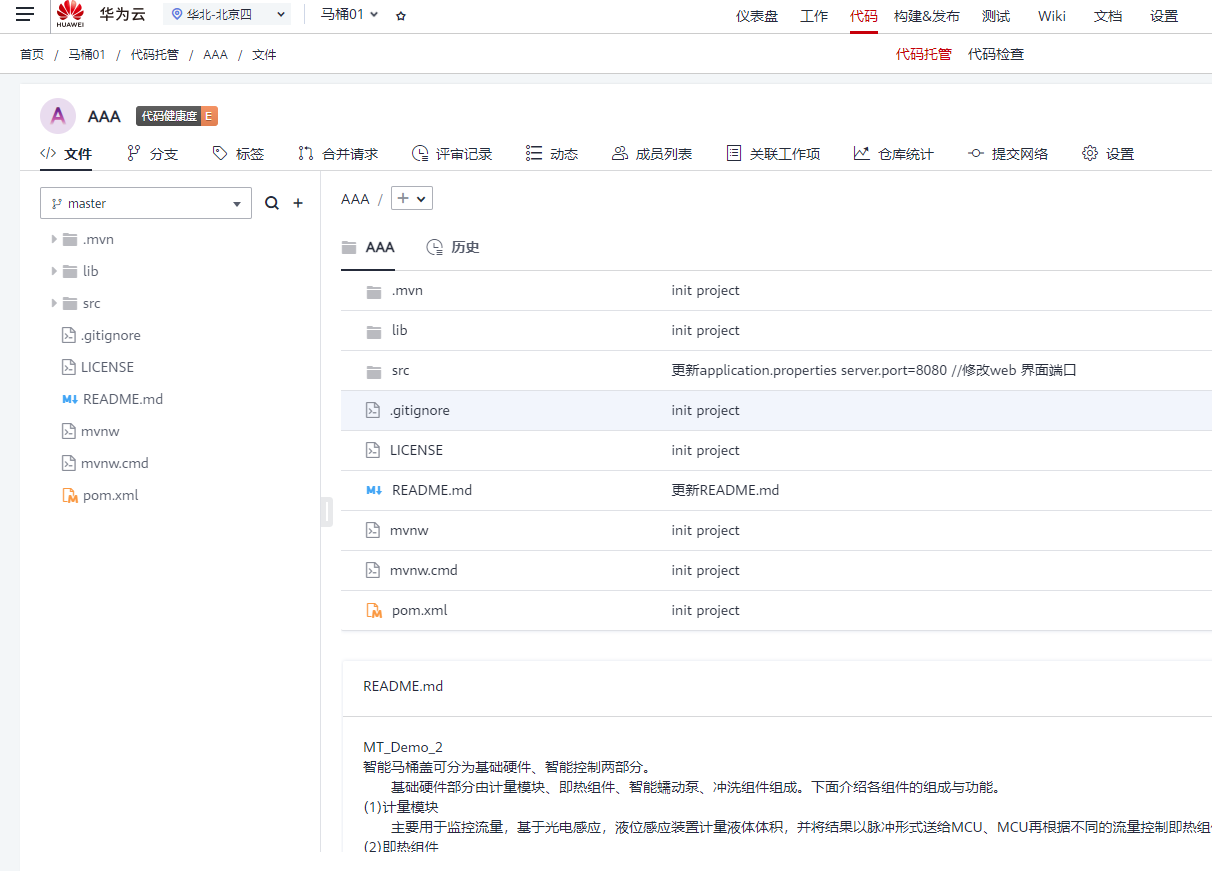 2.“服务列表”->“软件开发服务DevCloud”->“项目管理”,选择导航栏“代码 > 代码托管”,进入管理页面,代码托管可以看到自己代码仓库里的代码,可以和团队共同进行维护,这个应该属于加强版,收费版的GITHub 吧