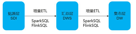 湖内数据通常会采用数仓分层存储,例如:贴源层(SDI)、汇总层(DWS)、集市层(DW),各家企业也会有不同的分层标准。数据在各层直接流转也会有相应的规范。传统数据湖通常采用天级全量数据ETL处理以实现各层之间数据流转。