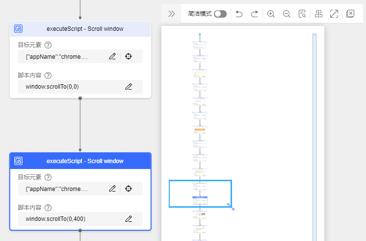 对于网页的滚动,自动录制是使用的下面的这种方法,这个比手工去选择控件来完成,好像要完善一些。