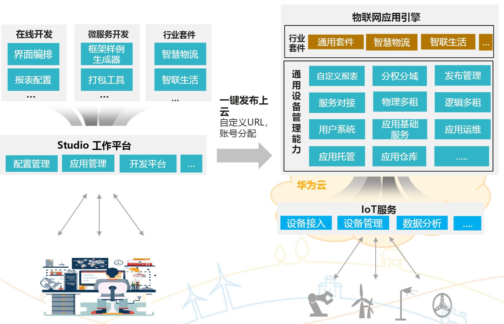 客户诉求:基于公有云/私有云提供一站式设备接入/应用创建&部署服务,实现loT业务快速上线,按需订阅使用