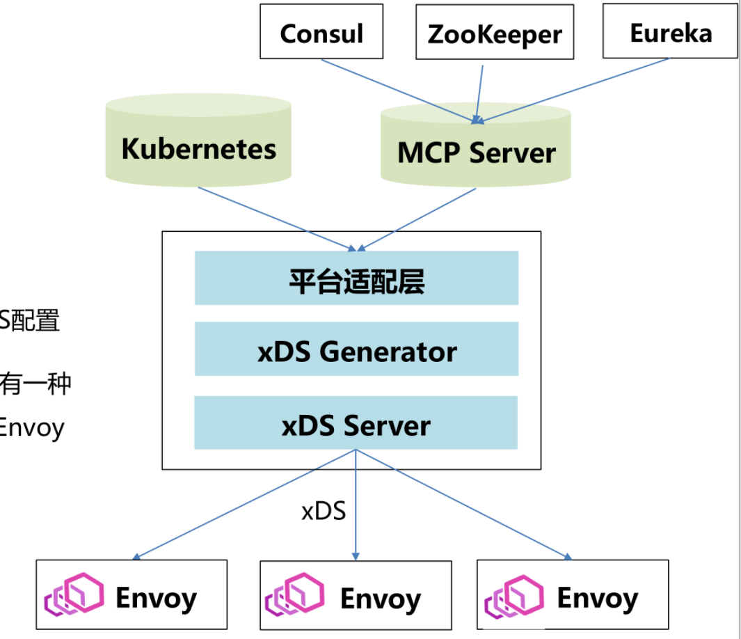 3.xDS服务器向下对所有的数据面Sidecar提供xDS配置。