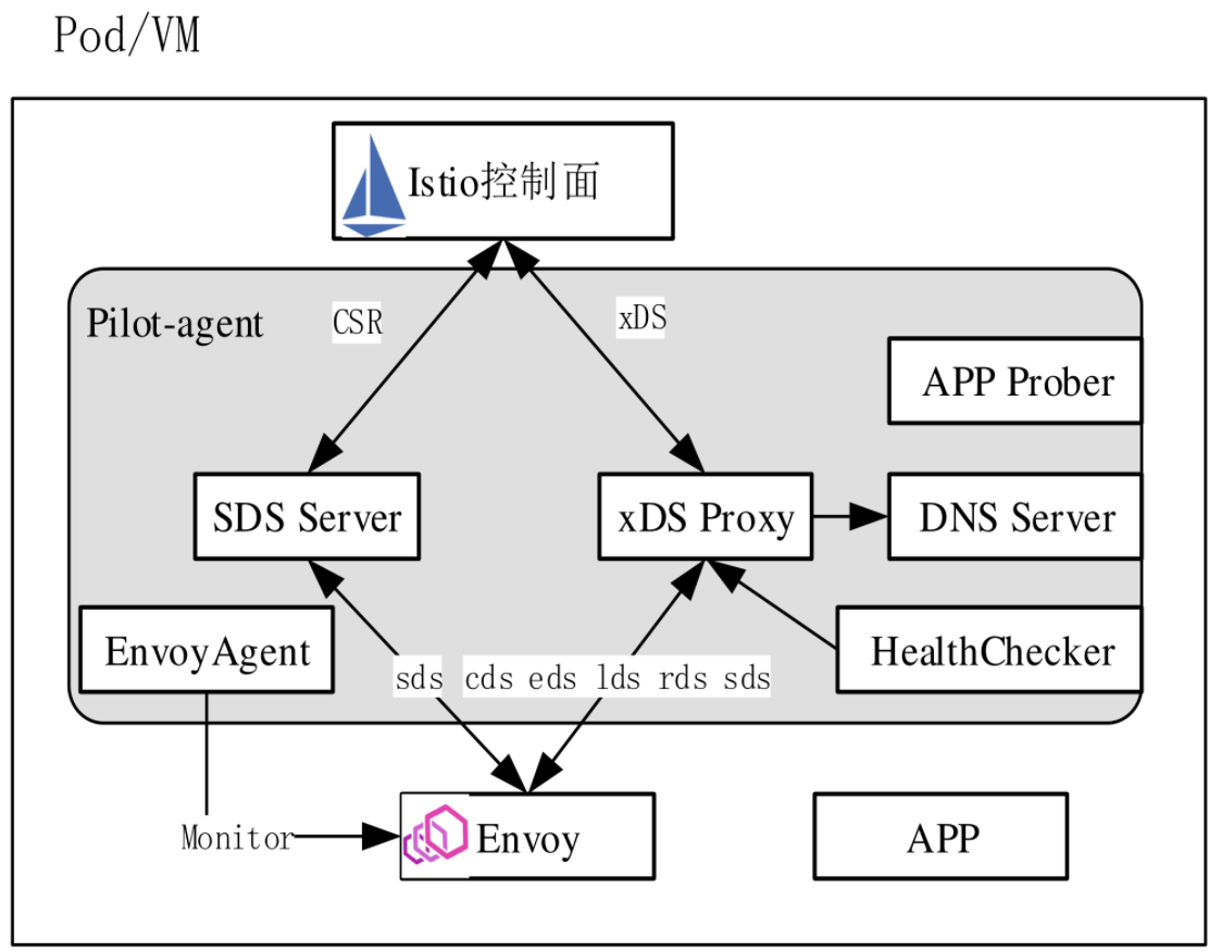 1. 自动注入:在创建应用程序时自动注入 Sidecar代理Envoy程序。在 Kubernetes中创建 Pod时,Kube-apiserver调用控制面组件的 Sidecar-Injector服务,自动修改应用程序的描述信息并注入Sidecar。在 真正创建Pod时,在创建业务容器的Pod中同时创建Sidecar容器。