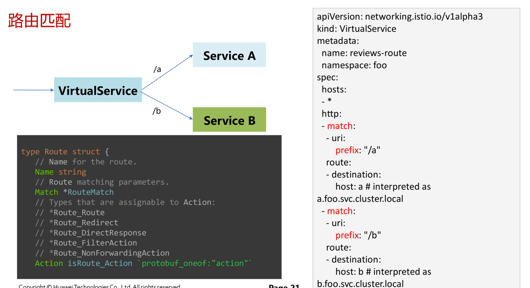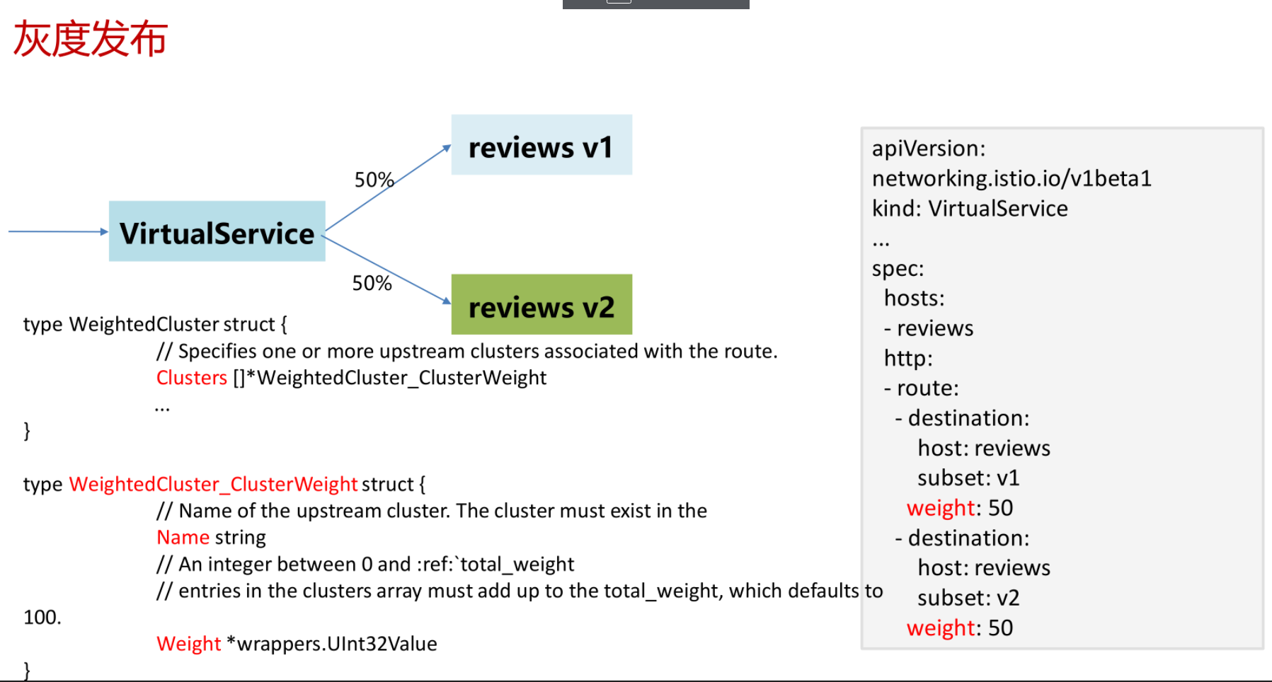 VirtualService:定义一些路由匹配、灰度、故障注入等功能。