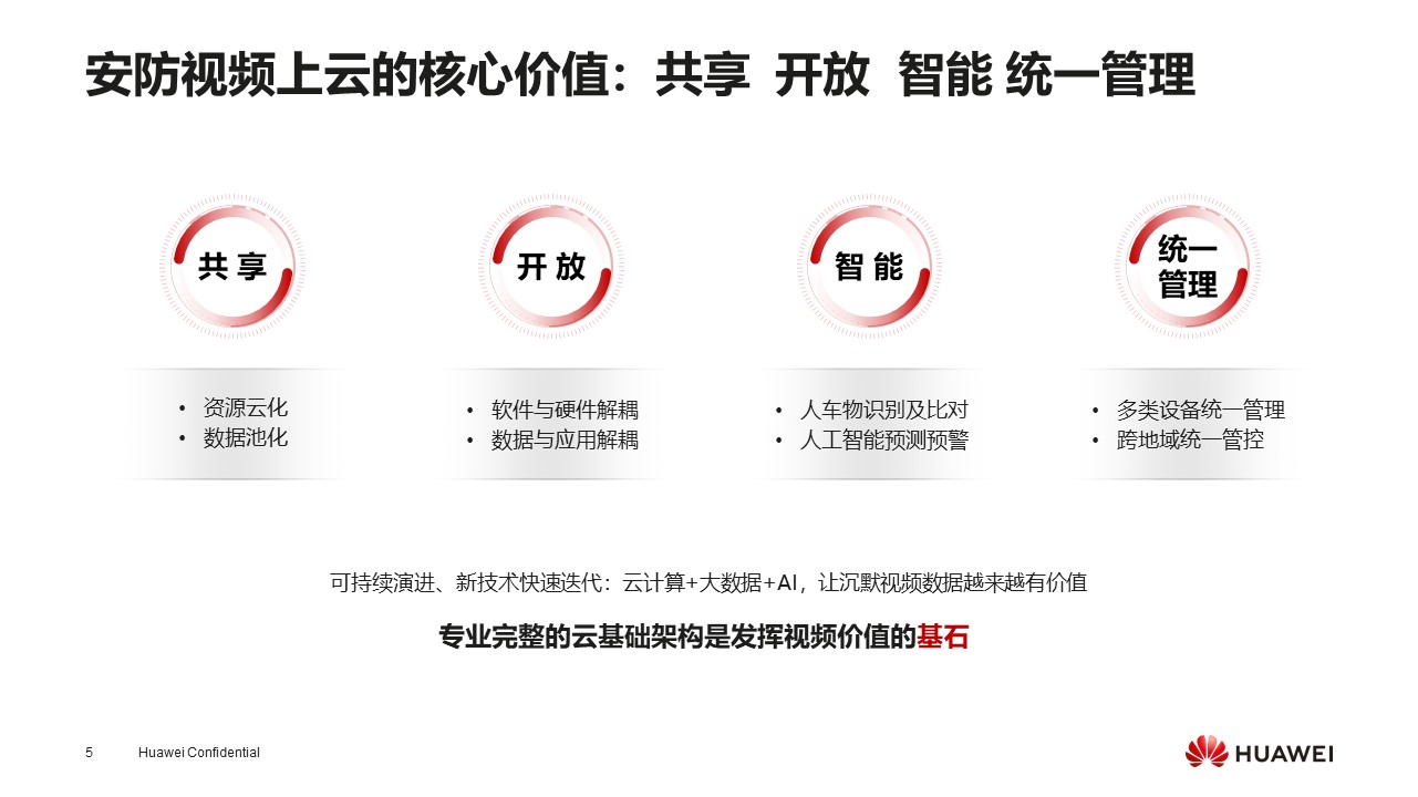 第二是视频上云为我们带来的好处:共享、开发、智能、统一管理。