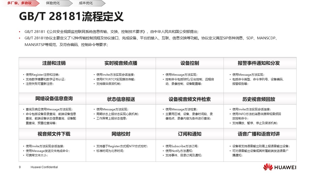 有了GB/T 28181协议,那么从华为云的角度来看,我们优先实现了这个协议,现在的项目中所有主流摄像头都可以基于GB/T 28181接入,可以很好地解决多厂商、多协议的问题。如果说不同的业务场景有特殊诉求,我们还可以支持RTMP、HTTP-FLV等标准协议。