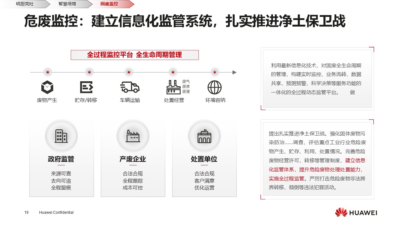 化工企业生产的固体材料一旦存放、运输,处置不当会导致较大的问题,最直观的盐城爆炸就是因为处置不当造成的,本地视频也丢失了。从这个角度来看,视频上云就可以杜绝视频丢失问题。这个业务场景不仅有视频应用,还有其它IoT设备联合感知,完成固废全生命周期管理,通过这种方式能够很好地监督企业,帮助企业规范生产。