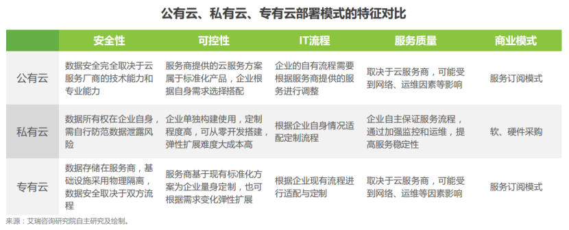 公有云经过近十年的发展,市场格局已趋于稳定,头部巨头厂商将市场瓜分殆尽,市场走向高度集中。其他云服务厂商面对公有云市场日益提高的进入门槛, 更倾向于以私有云、专有云为切入点,错位出击,取得一定差异化优势。针对产业互联网的主体,尤其是在政府和大型企业的数字化转型开始加速的背景下,专有云、私有云等非公有云服务的潜在客群正在快速培育中,推动市场上涌现出一批垂直的专有云、私有云厂商。