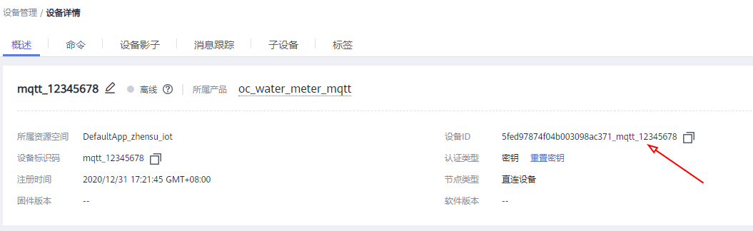 ( 1 ) 华为云 上 点击设备 详情 , 复制设备 ID 。