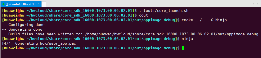 ( 2 )编译生成文件存于: ./out/appimage_debug/hex/ 咱们需要的就是 user_app .pac 。此文件用于下载到 L610 -CN 上启动运行。