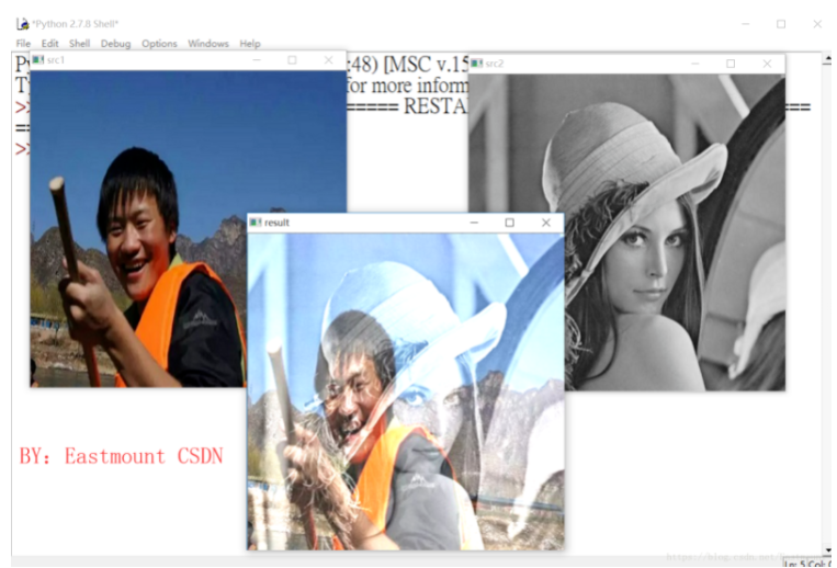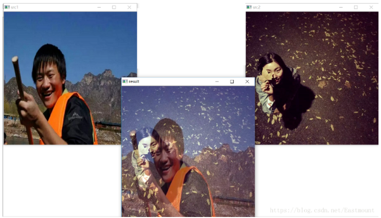 dst = cv2.addWeighter(scr1, alpha, src2, beta, gamma)