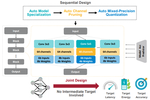 使用当前的方法,将不同的NN模型量化并部署到INT8是很简单的,而不会明显失去准确性。有几个软件包可用于部署INT8量化模型(例如,Nvidia的TensorRT、TVM等),每个软件包都有良好的文档。然而,用于低位精度量化的软件并不广泛可用,有时也不存在。例如,Nvidia的TensorRT目前不支持INT8以外的量化。此外,对INT4量化的支持直到最近才被添加到TVM中。使用INT4/INT8进行低精度和混合精度量化在实践中有效和必要的,因此,开发用于低精度量化的高效软件API将产生重要影响。 - 硬件和NN架构联合设计: