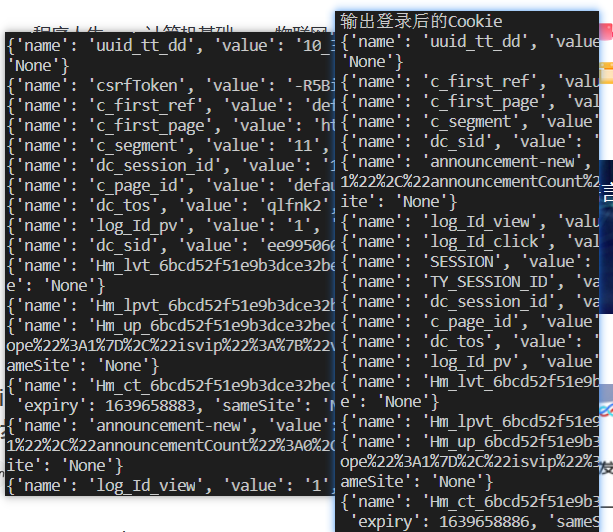 print("输出登录后的Cookie")