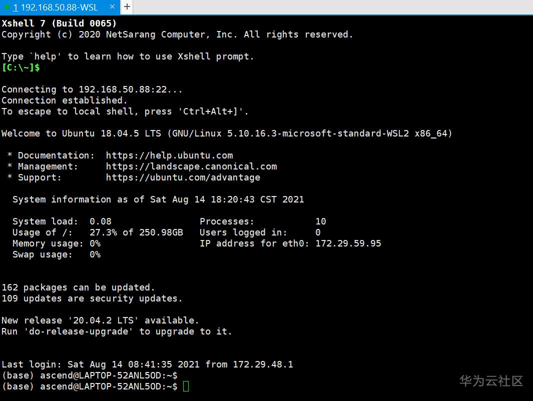 使用ipconfig查看现有的WSL的IP:172.29.59.95