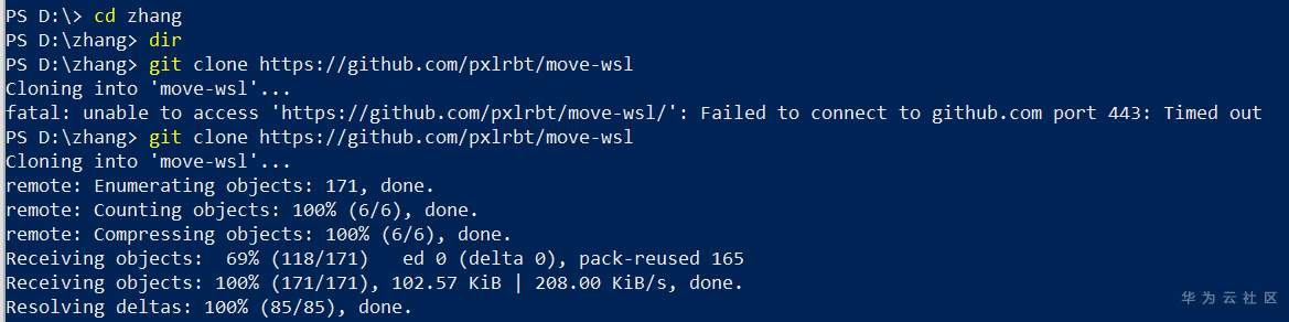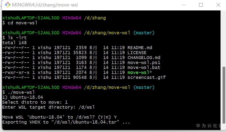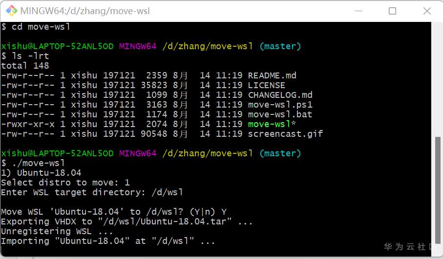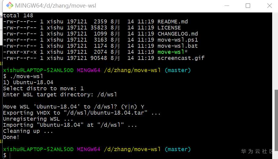 耐心等待执行 move-wsl 命令结束: