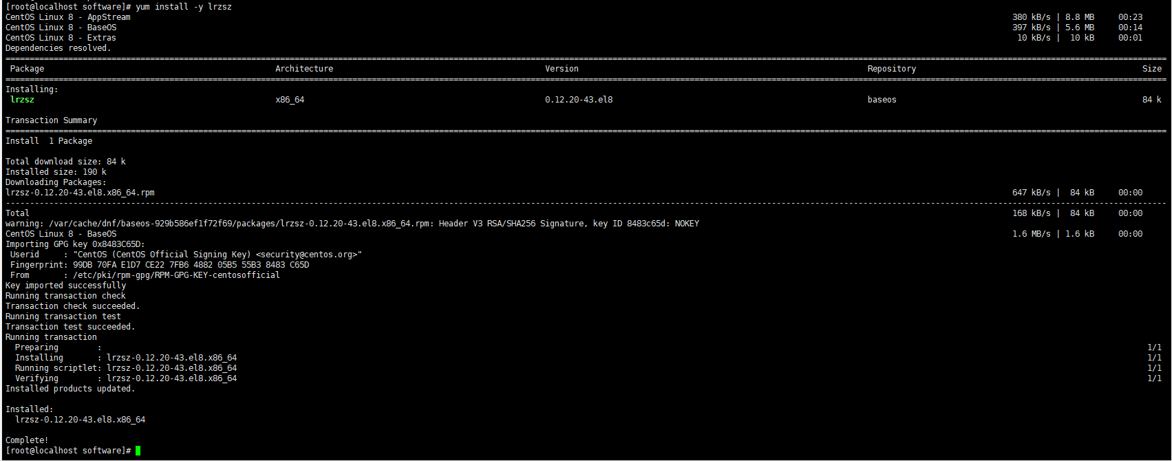 [root@localhost software]# rz