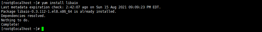[root@localhost ~]# yum install libaio