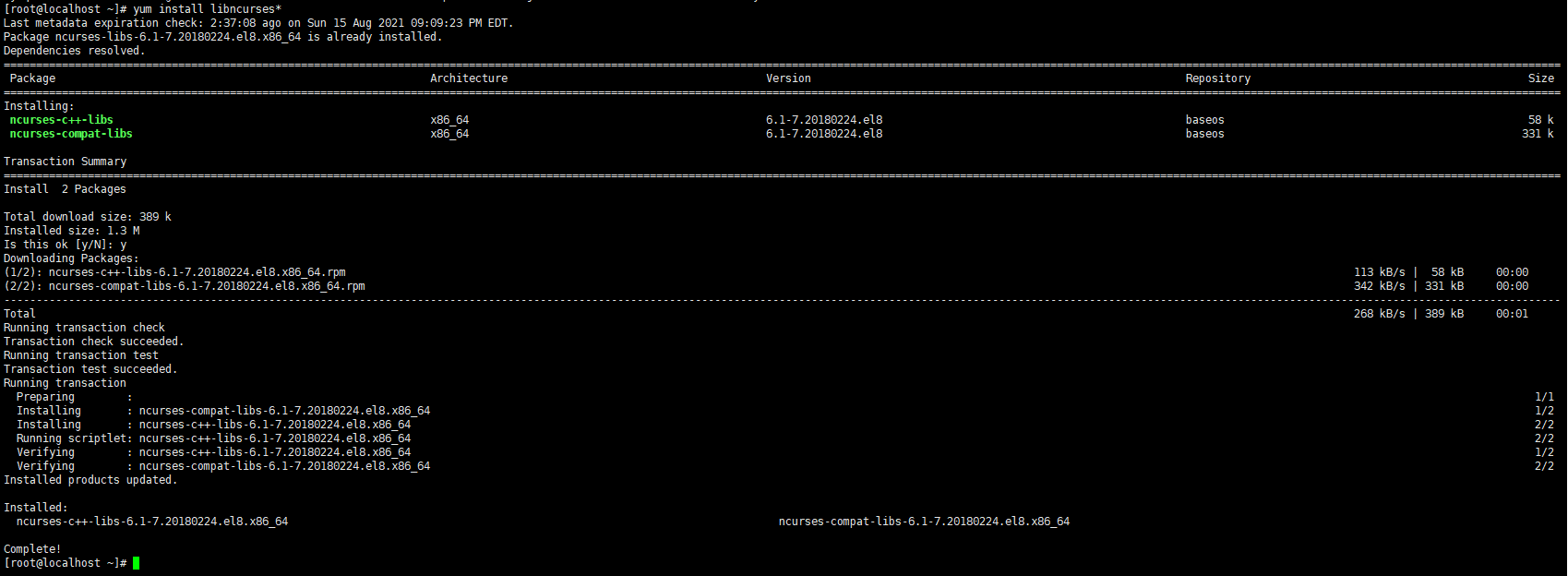 [root@localhost ~]# yum install libncurses*