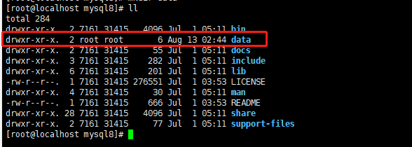 [root@localhost mysql8]# chown mysql:mysql data